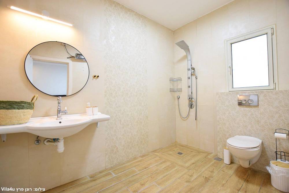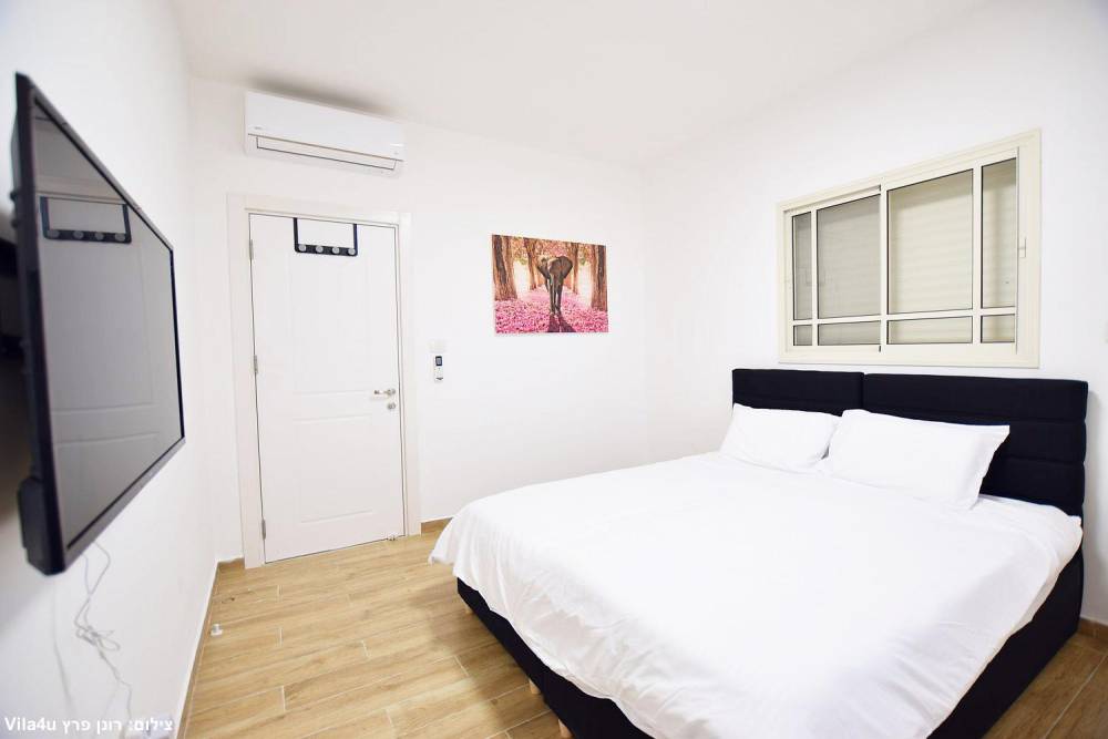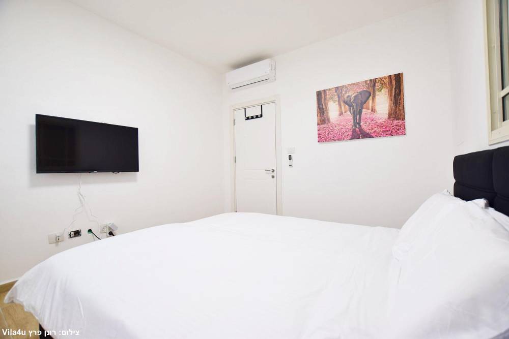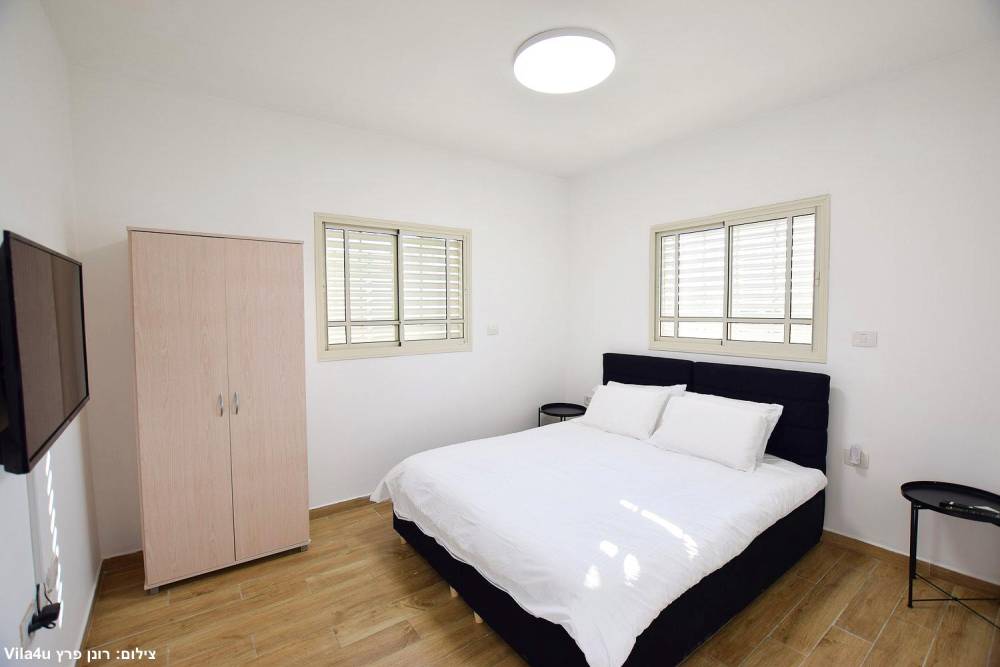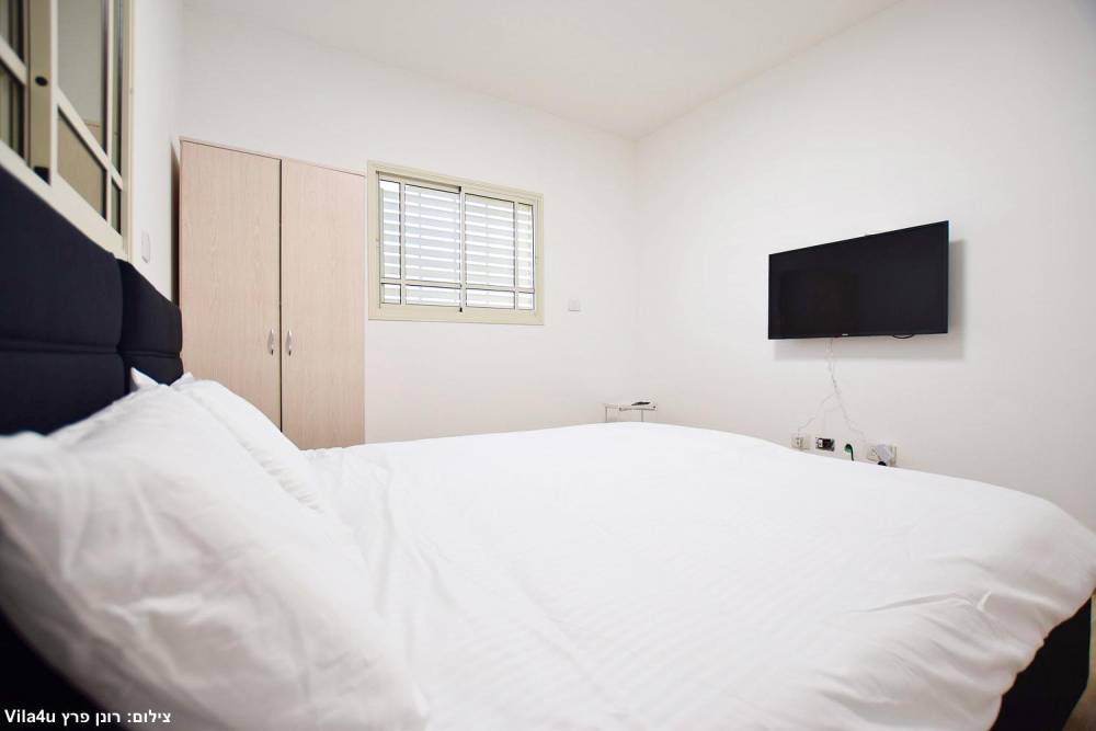 חדר שינה 1 - מיטה יהודית, ארון לאחסון, שידה, מסך טלוויזיה בחיבור ל-YES, מקרר מיני, מתלה בגדים, חדר רחצה פרטי.