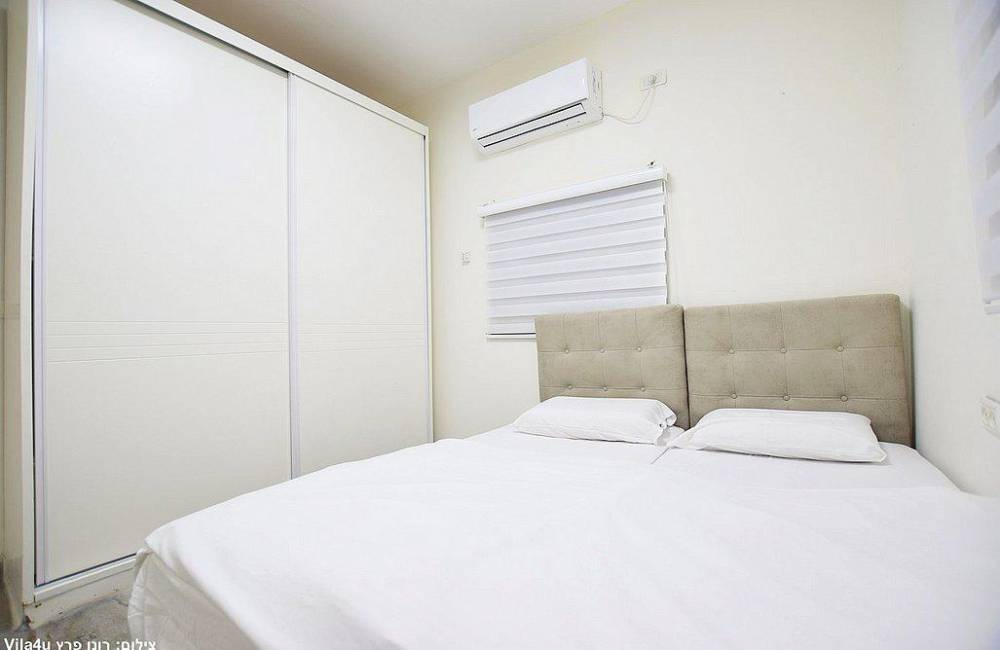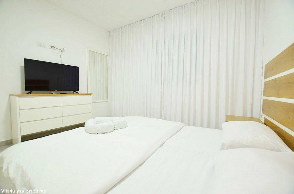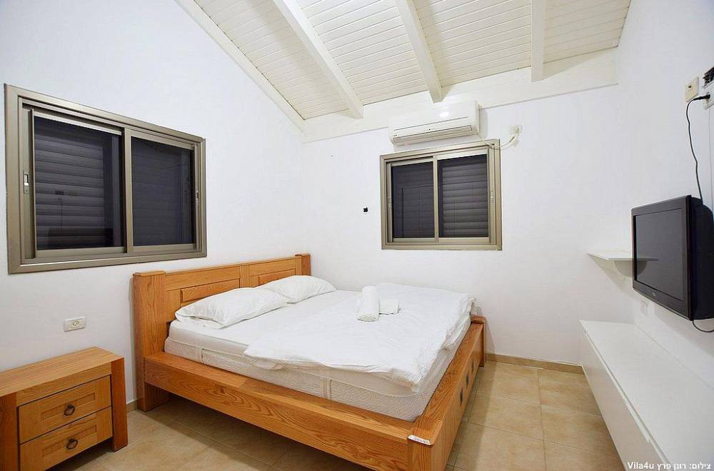 אבזור החדרים: בכל חדר מיטה זוגית מוצעת, טלוויזיה, שידה או ארון