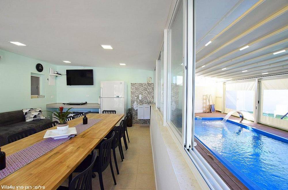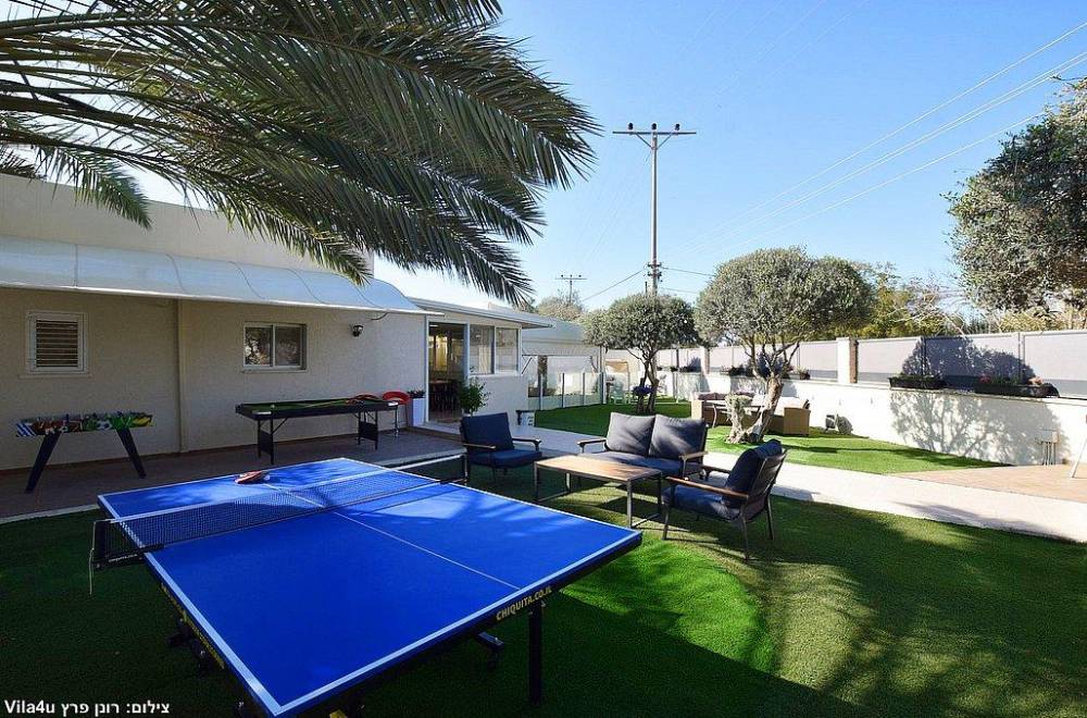 הוילה מושלמת לאירוח עד 13 איש, מונה כ-4 חדרי שינה מפנקים, מטבח מאובזר, חדר אוכל, סלון ויציאה אל מתחם חיצוני רווי בצמחייה ירוקה ועצי נוי, בריכה, משחקי שולחן וריהוט גן
