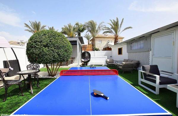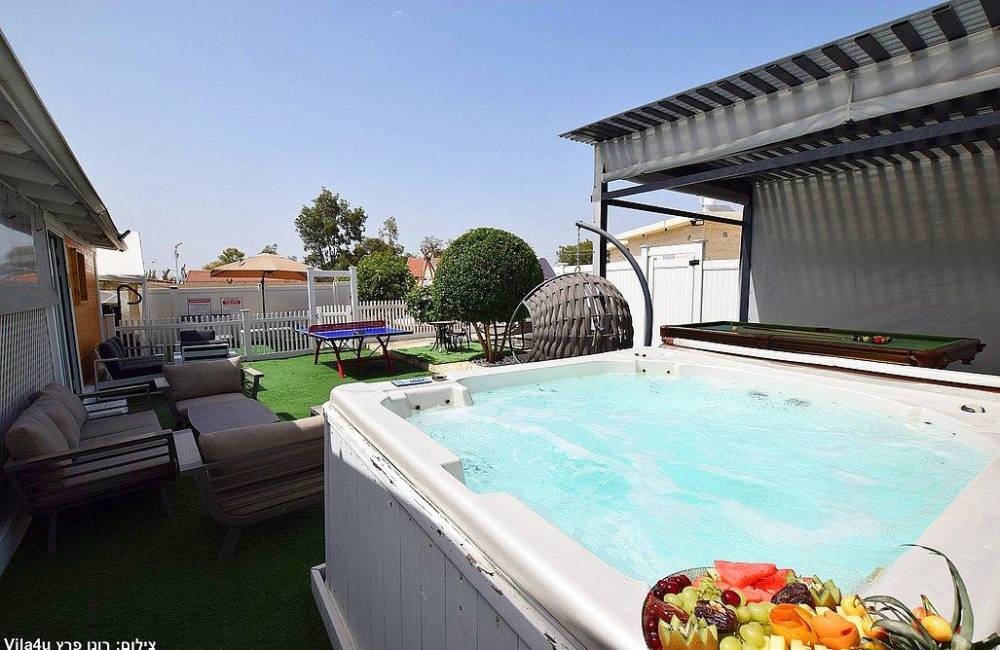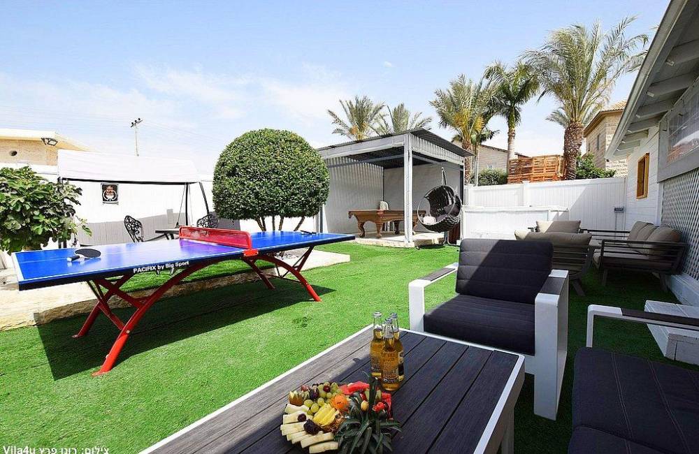 וילה מפנקת הכוללת חצר מושקעת עם בריכת זרמים, שולחנות משחק, 5 חדרי שינה נוחים, סלון מרוהט ומטבח מאובזר.