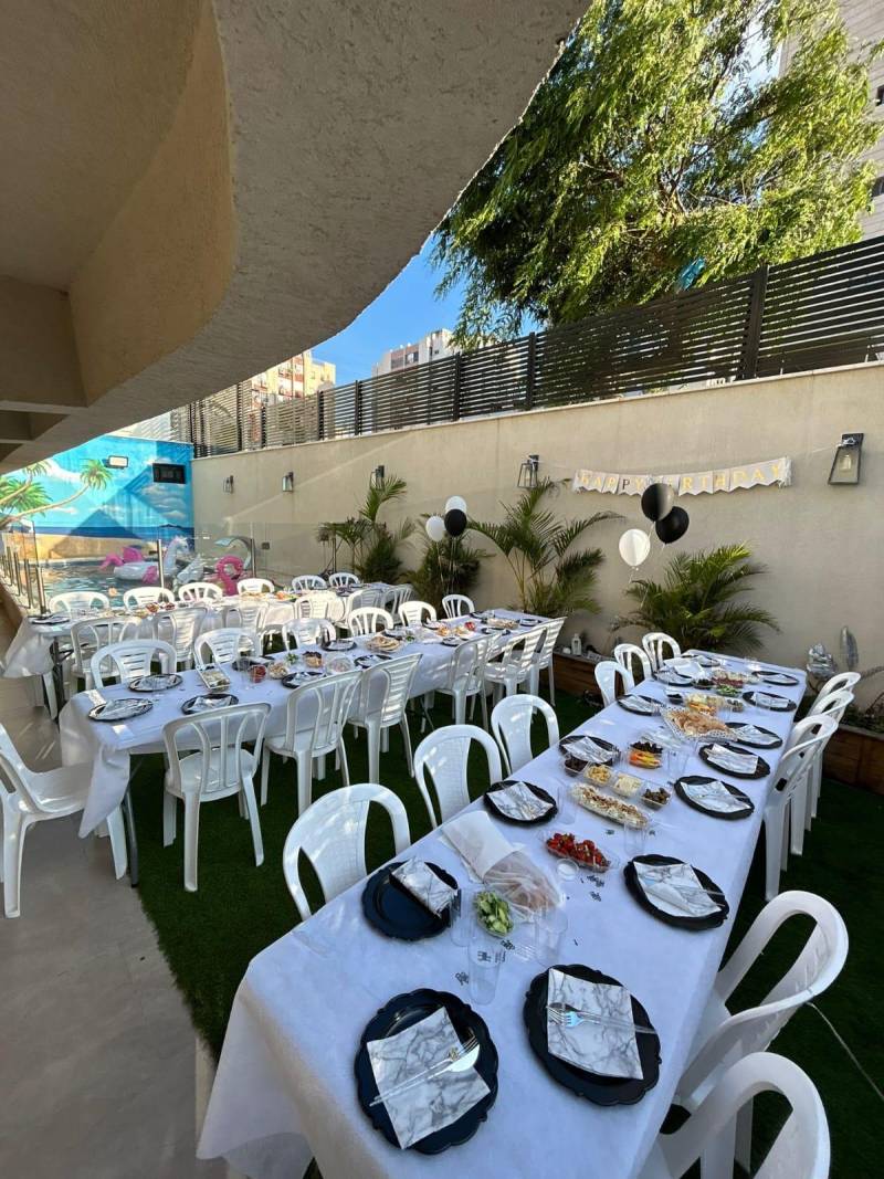 החצר בטיילת מתאימה למגוון של אירועים החל מיום הולדת ומסיבת רווקות ועד בת מצווה בר מצווה וימי גיבוש וחברה. האירוח במתחם עד 35 איש.