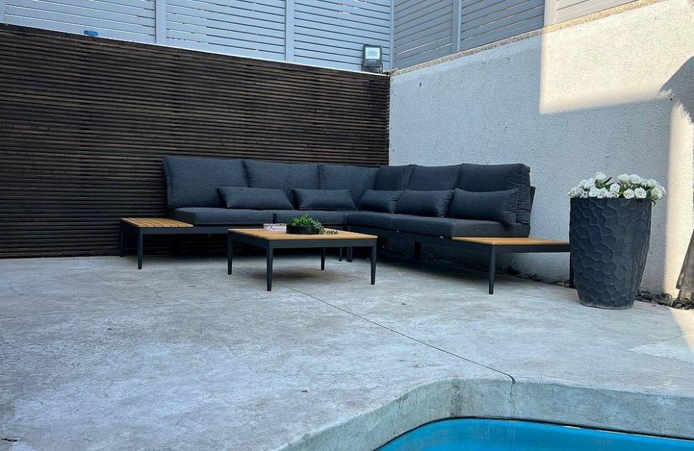 פינות שיזוף מתחם חיצוני קסום עם בריכת שחייה (מחוממת בחורף), פינות ישיבה