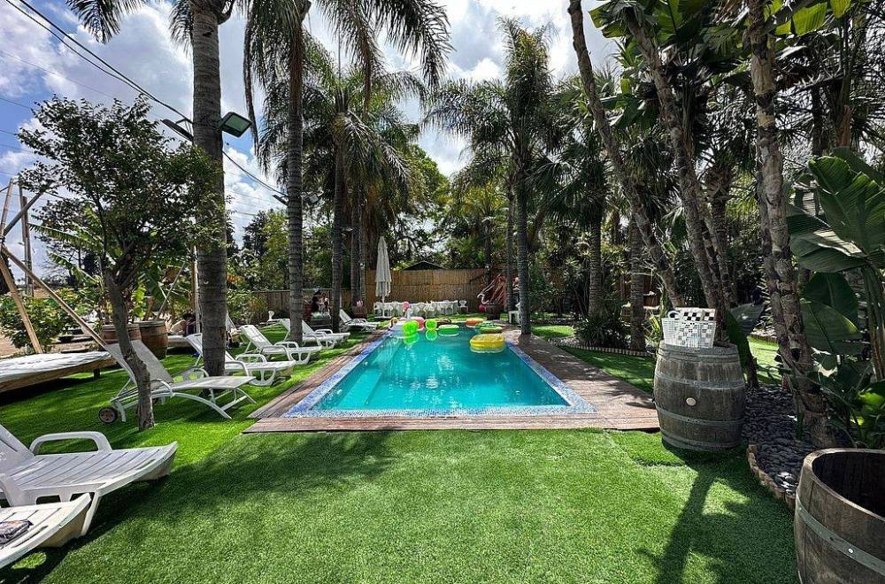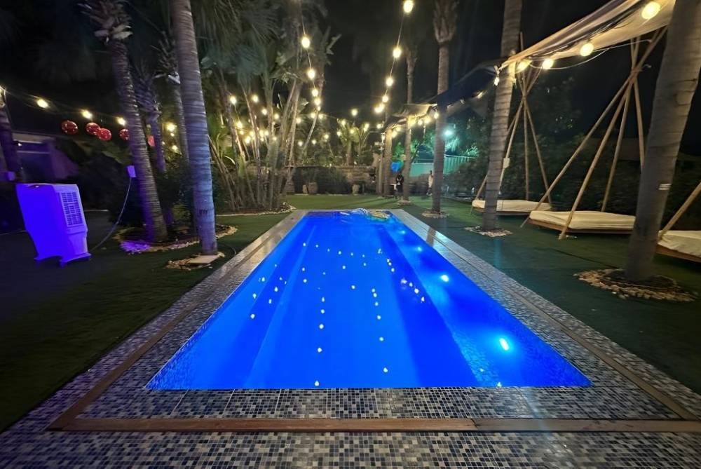 - בריכת שחייה ענקית עם תאורה לילית מרהיבה