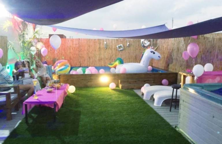 מתחם מסיבות סופר מפנק בעיר כפר סבא ללא הגבלת רעש הכולל גג מקורה עם בריכת שחייה, ג'קוזי ספא פינות ישיבה ופינת מנגל. פנים הלופט כולל חדר שינה, שולחן סנוקר, מערכות תאורה והגברה, מערכת קריוקי ועוד.