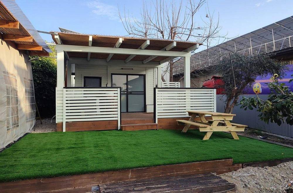 גינה קטנה ופרטית עם פינת ישיבה ומדשאות