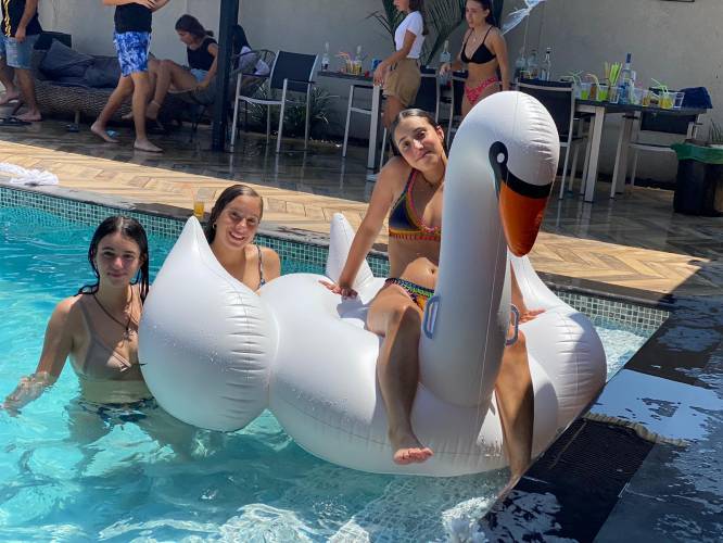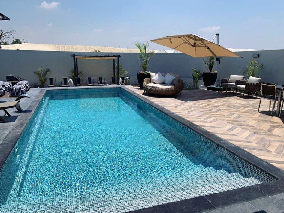 ברחבי הבריכה פינות זולה, שמשיות להצללה ומיטות שיזוף