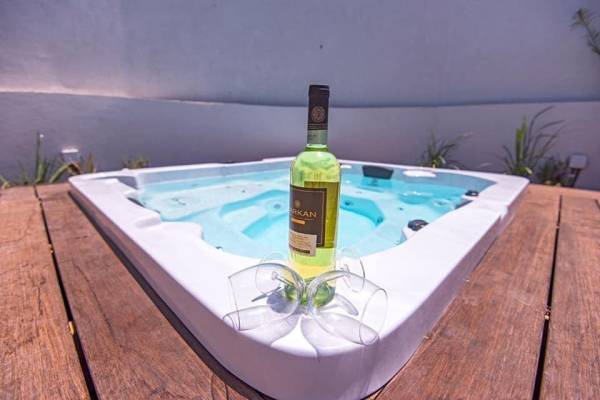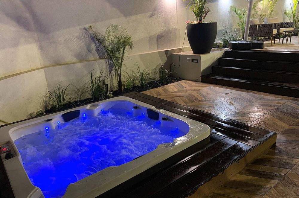 ג'קוזי ספא מחומם בנוי על בימת דק עץ