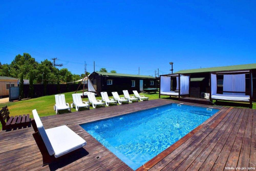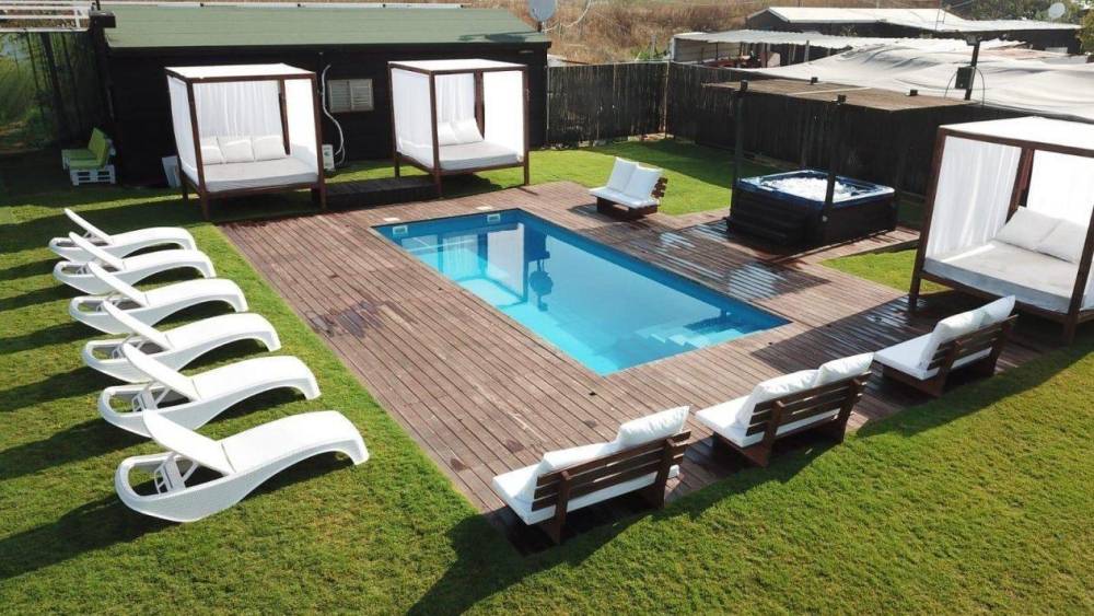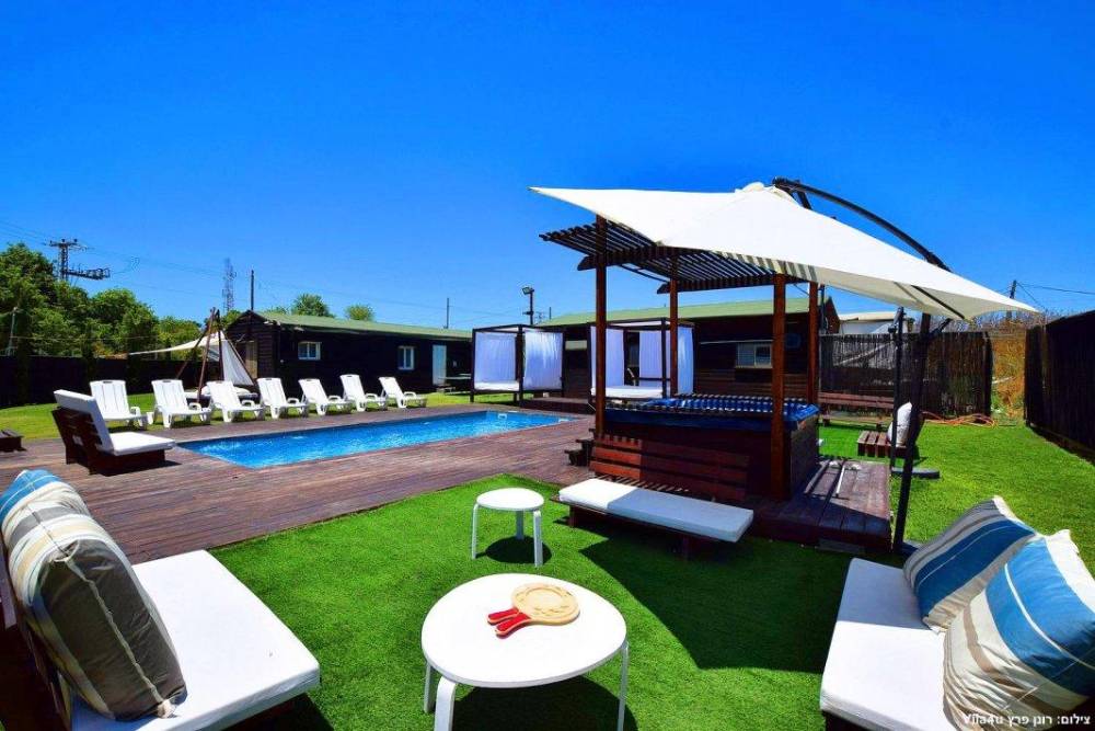 בשדות אירוח בטבע תוכלו ליהנות מ-5 חדרי שינה ו-2 חצרות כאשר בכל אחת בריכת שחייה צלולה, משחקי שולחן, מערכות שמע איכותית, ג'קוזי ספא ופינת ברביקיו. את המתחם עוטפות מדשאות ירוקות המתפרסות על 200 מטר.
