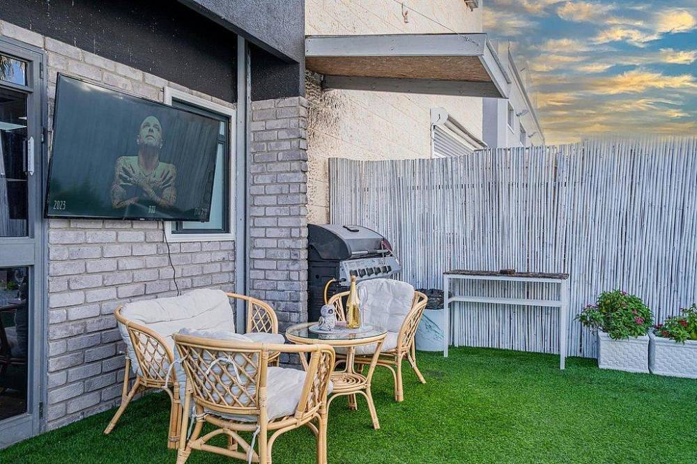דשא ירוק ופינות ישיבה