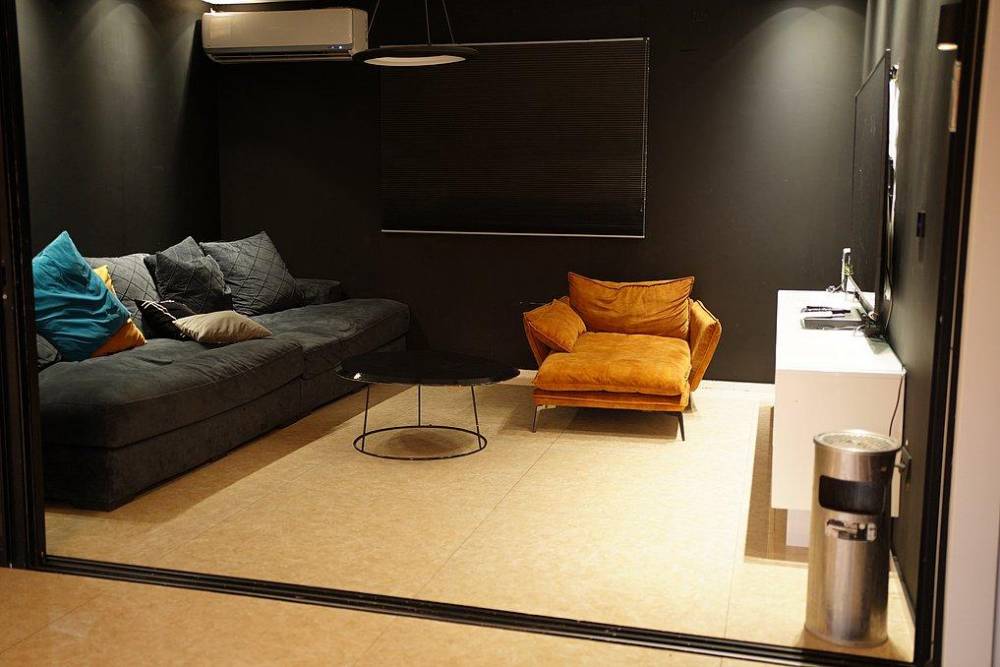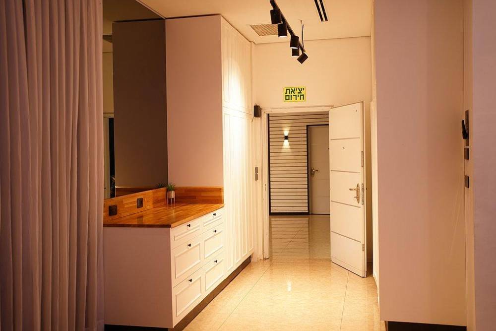 בר עם מטבח הכולל מקררים ופלטת שבת