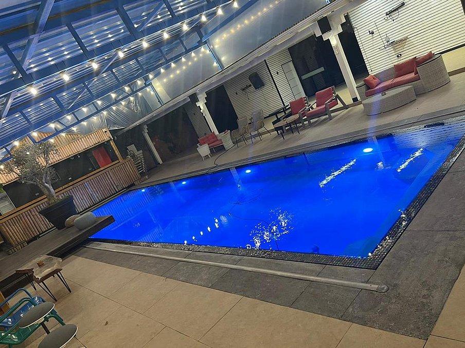 בריכת שחייה צלולה בגודל 18X5 מחוממת מקורה
