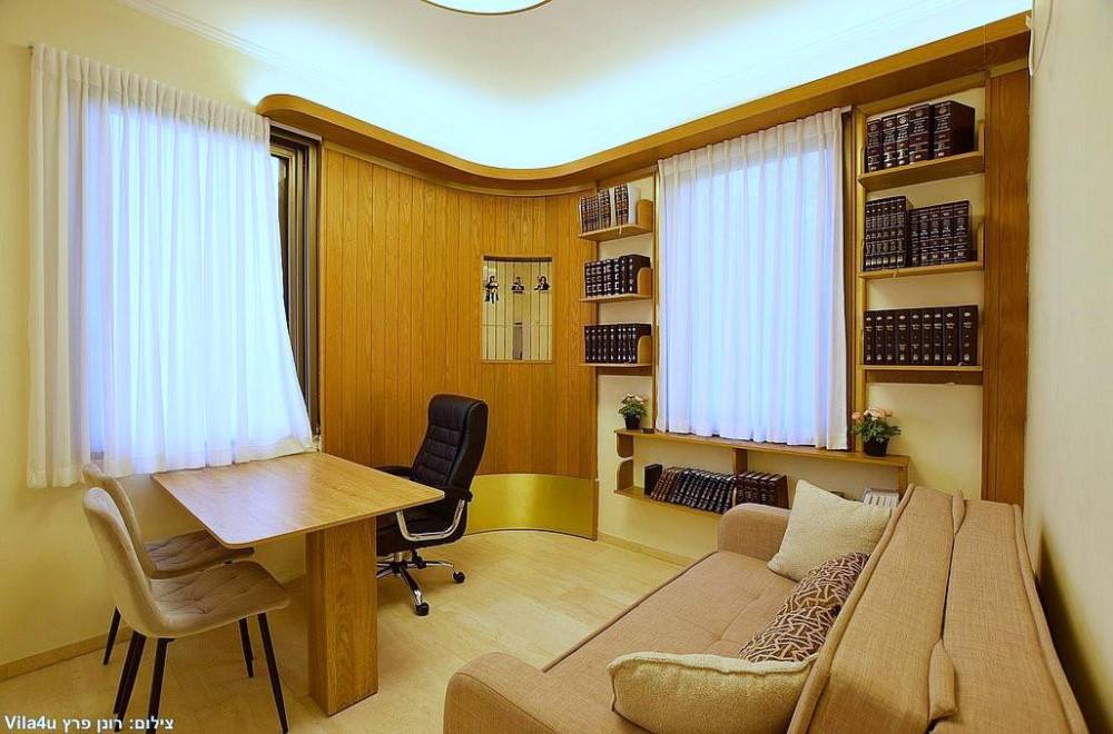 חדר שינה 7 - חדר לימוד - ספה נפתחת למיטה, שולחן כתיבה עם כיסא, ספרייה ומזגן