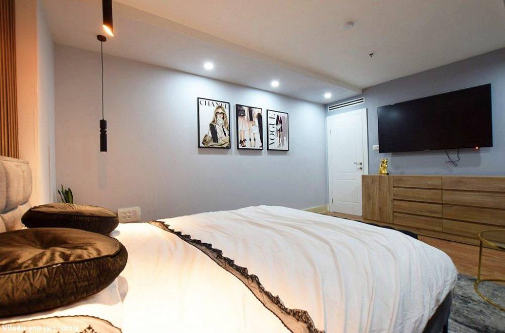מיטה זוגית עם מזרון אורטופדי, מסך צפייה ומיזוג אוויר