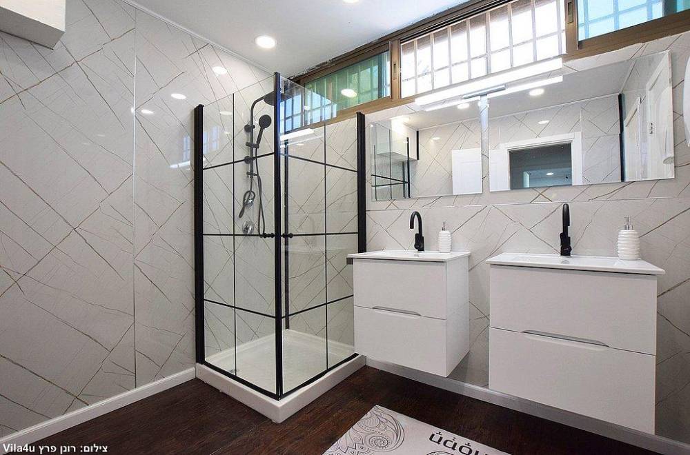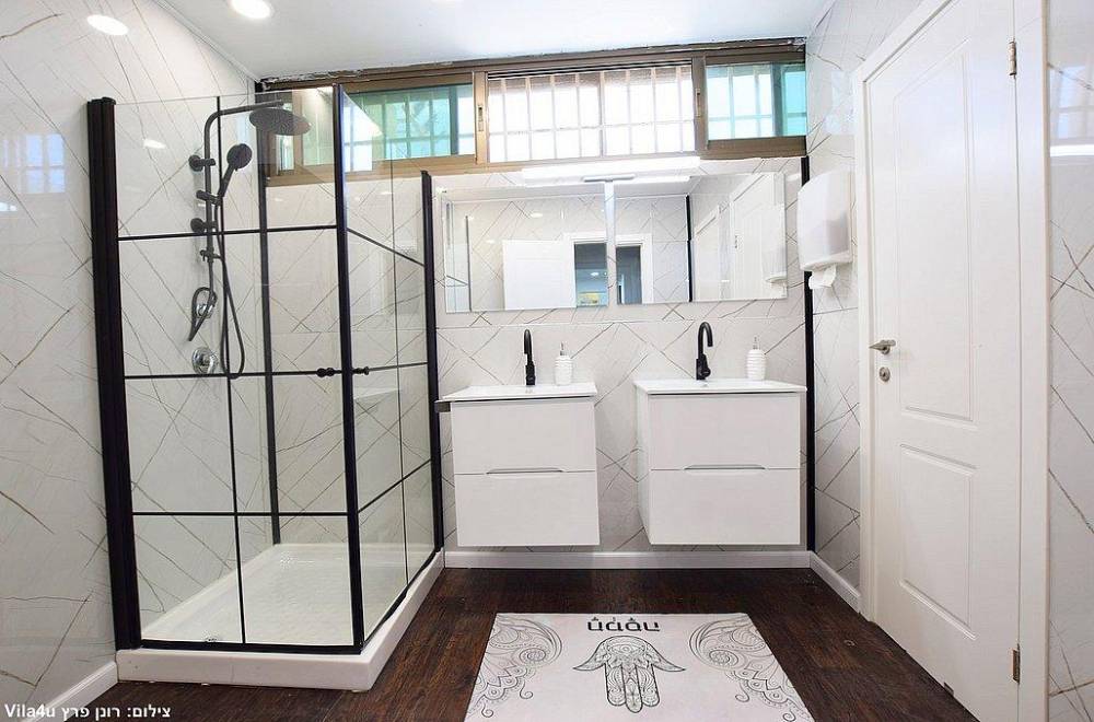 חדר רחצה עם מקלחת ושירותים