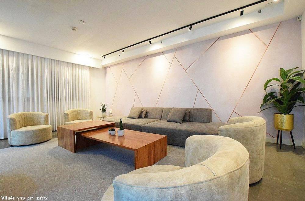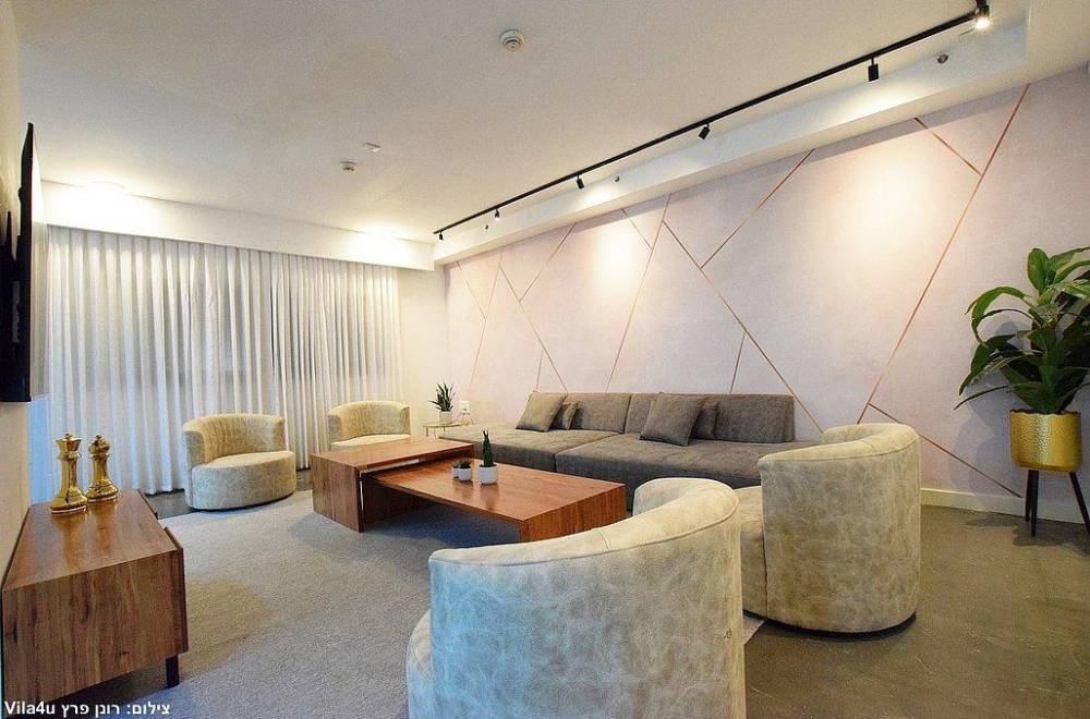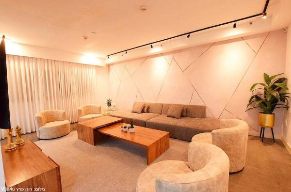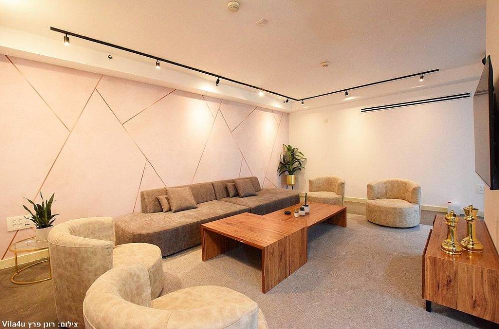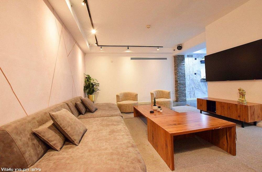 סלון יוקרתי נפתח לספה הכולל מסך צפייה