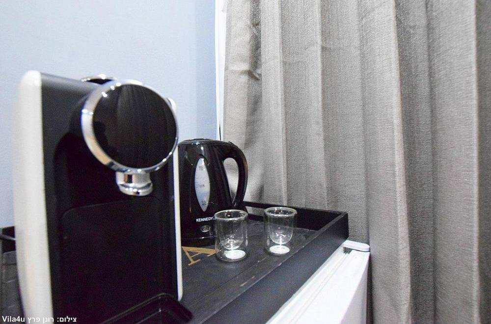 מטבח מאובזר הכולל: פינת קפה, מכונת אספרסו, קומקום חשמלי, מקרר, מיקרוגל