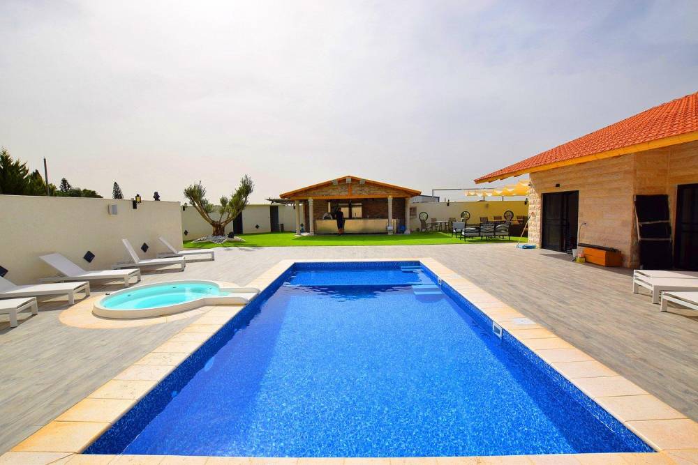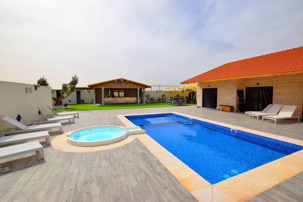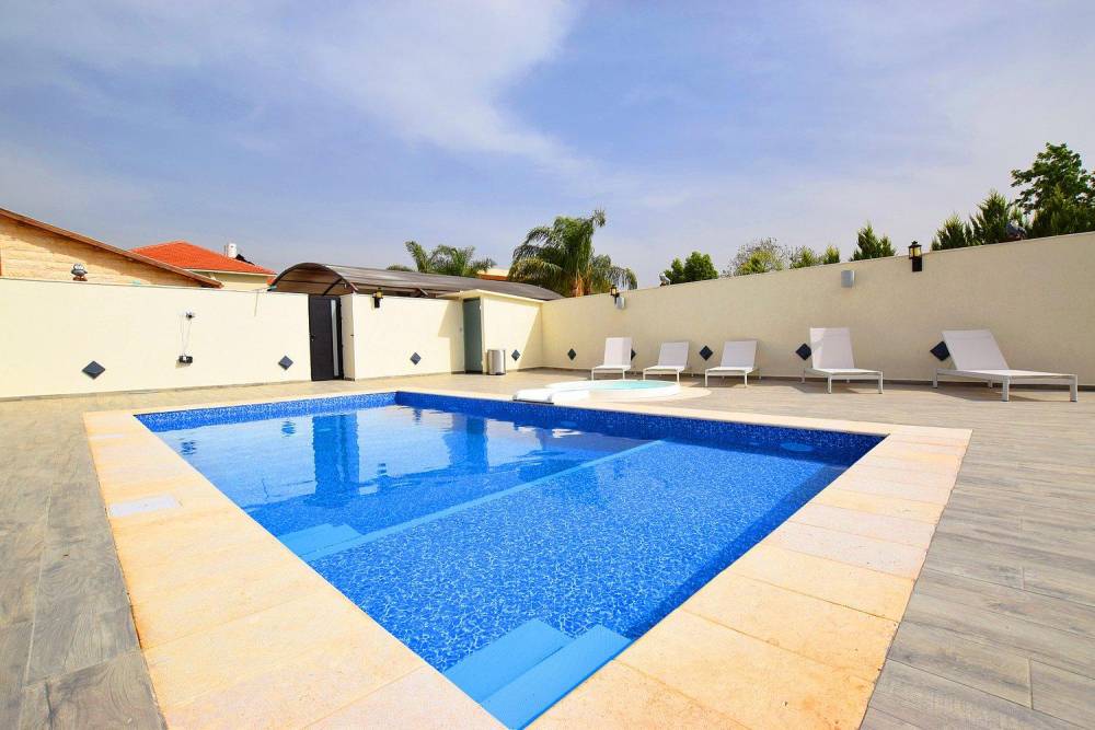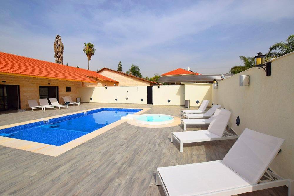 בריכה גדולה + ג’קוזי שנשפך לבריכה