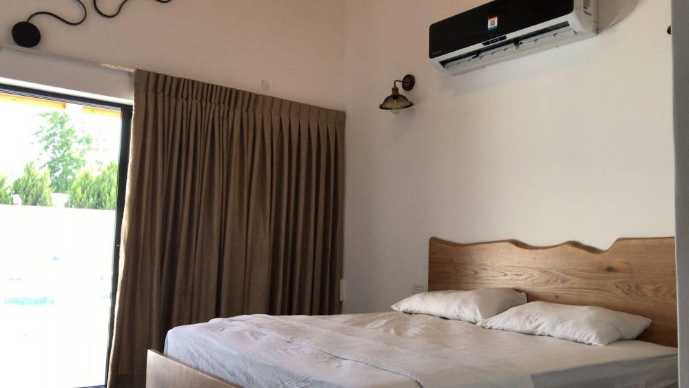 מיטה זוגית מוצעת, מיזוג אוויר, שידה מעוצבת