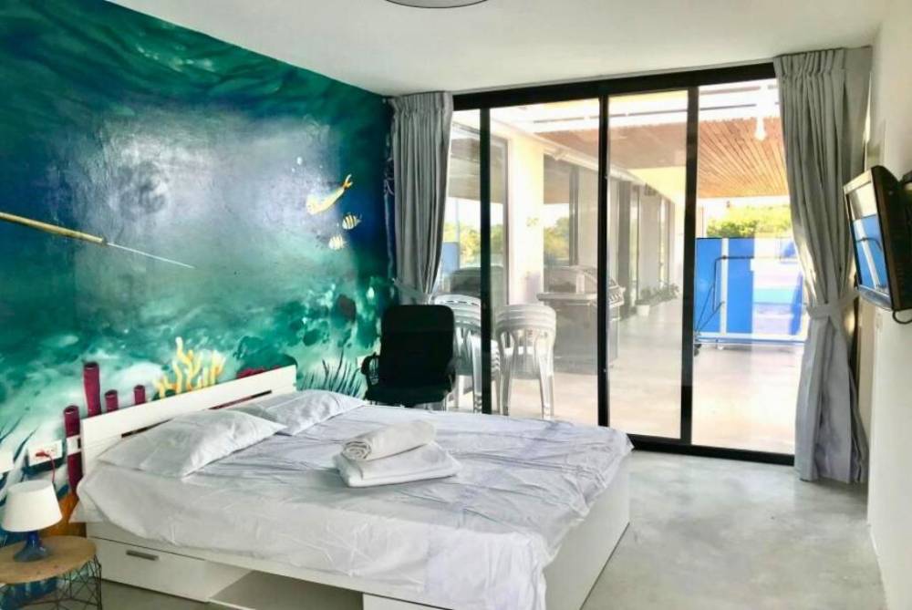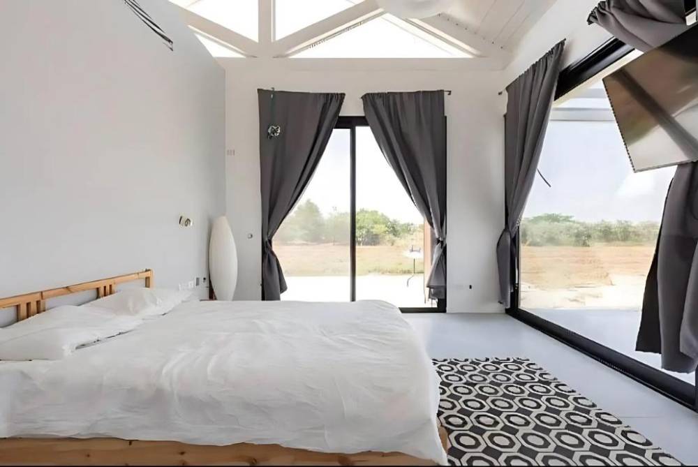 - 5 חדרי שינה ( מתוכם חדר ממ"ד )  אבזור 4 החדרים: מיטה זוגית, מסך טלויזיה, מיזוג אוויר, ושידות לאחסון.