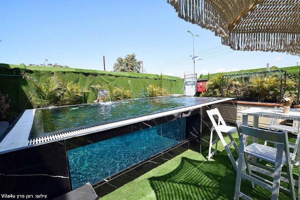 - בריכת שחייה חצי שקופה בשילוב ג'קוזי ספא מחומם