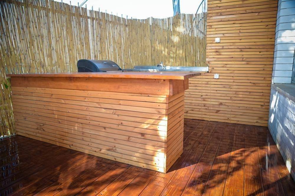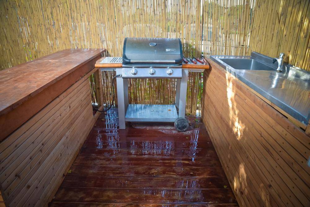 פינת מנגל גדולה מגז עם מטבחון חיצוני לצידה