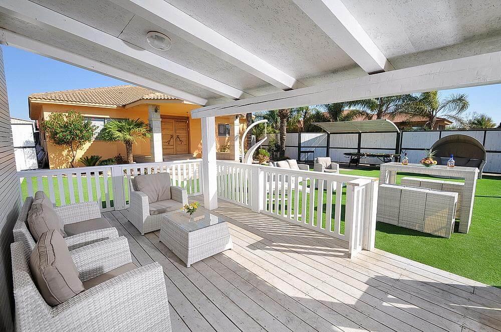 פרגולה מטומנת הכוללת בר כיסאות מסביב