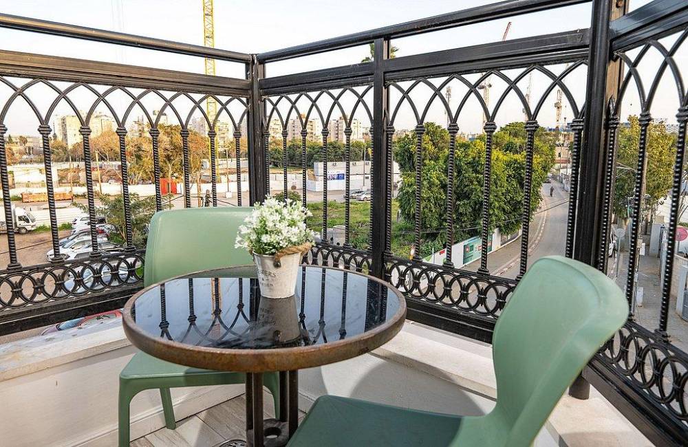 יציאה למרפסת פרטית עם שולחן וכיסאות, נוף יפואי אותנטי ומרהיב + מנגל גז