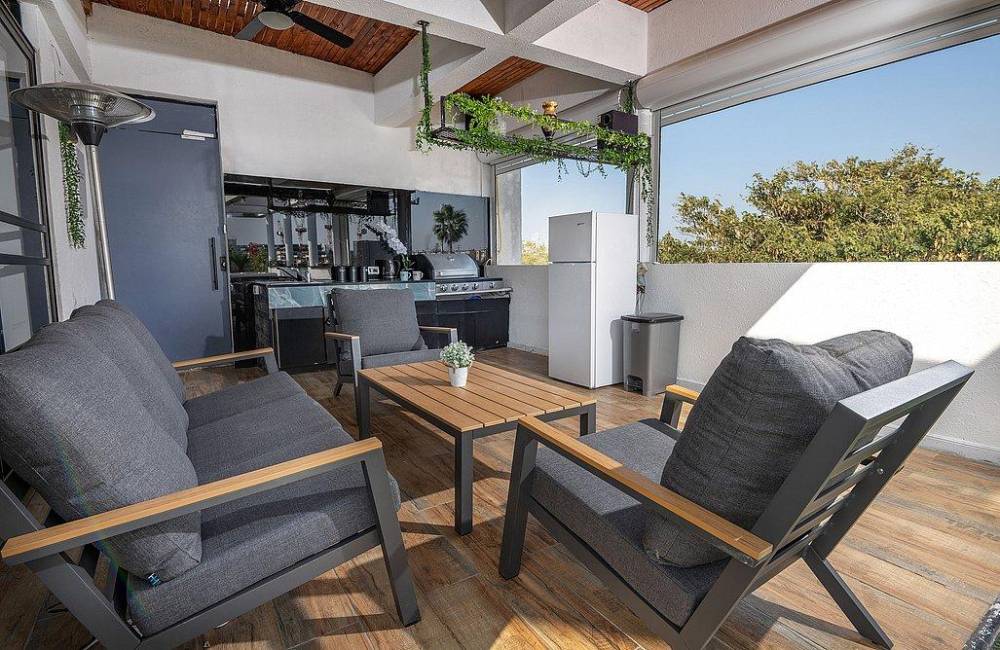 מרפסת ענקית עם פינות ישיבה אל מול הנוף