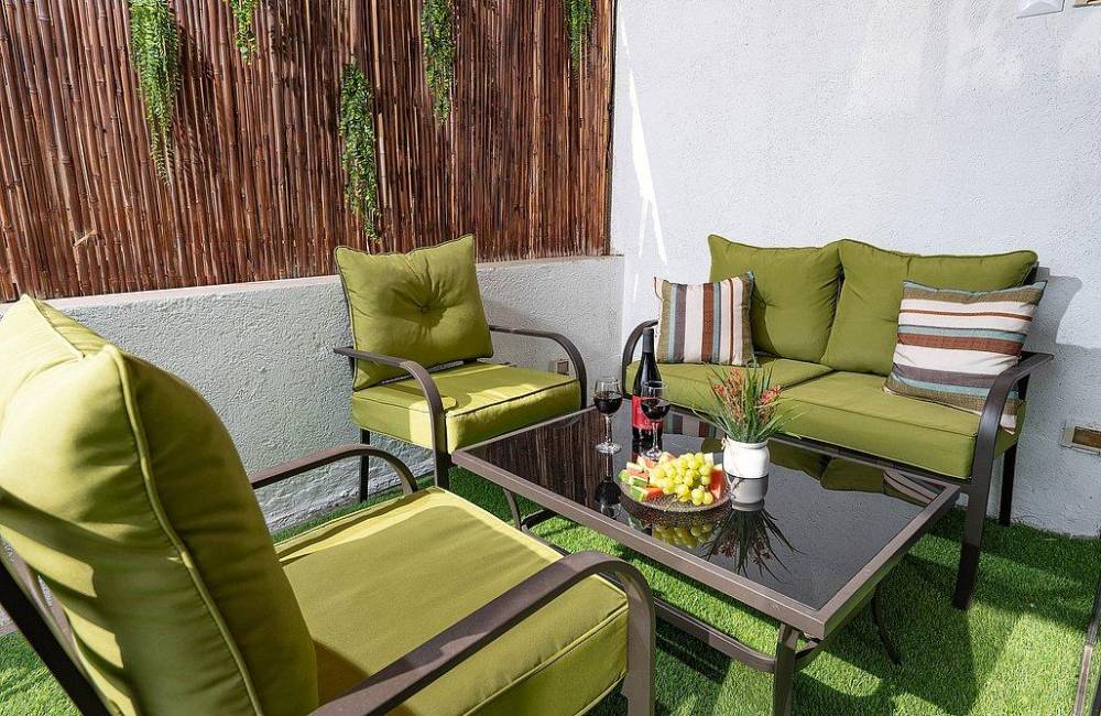 ריהוט גן עם מגוון פינות ישיבה וערסלים