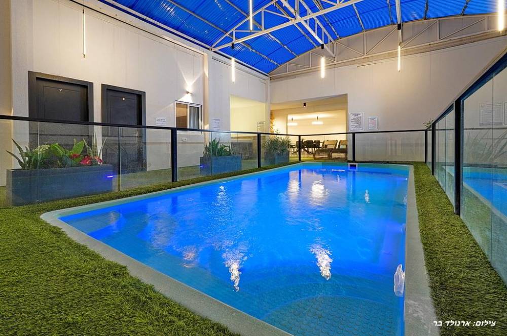 • בריכת שחייה בטיחותית, מחוממת ומקורה בגודל 7 על 4 מטר ועומק 1.40 מטר