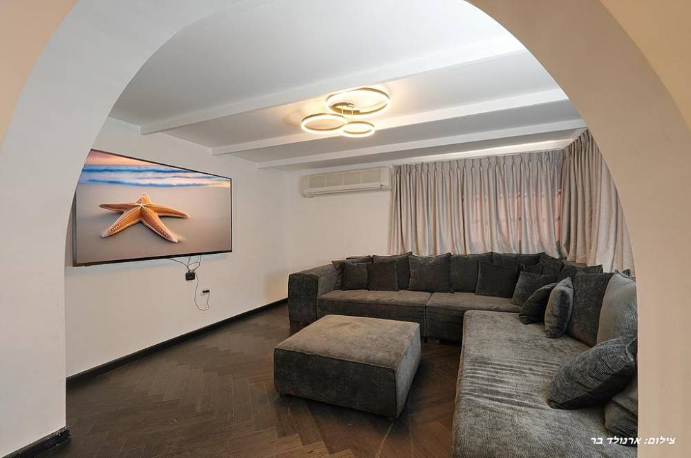 מערכת ישיבה סלונית אל מול מסך LCD 55 אינץ' עם חיבור ל-YES