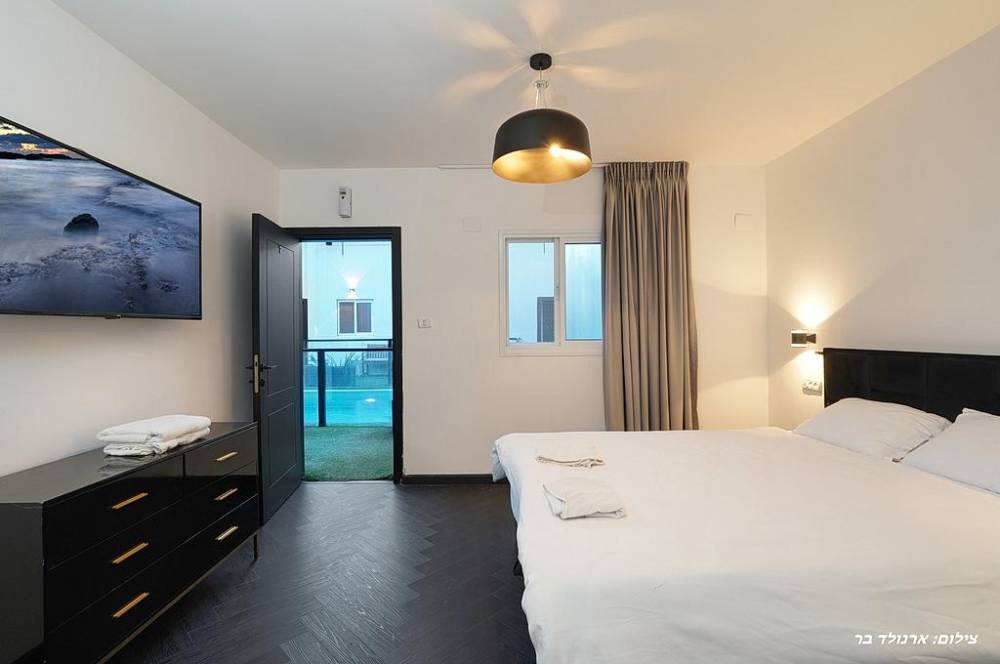 • 9 חדרי שינה הכוללים: מיטה זוגית יהודית, מיזוג אוויר, מסך LCD, שידות אחסון, חדר רחצה פרטי