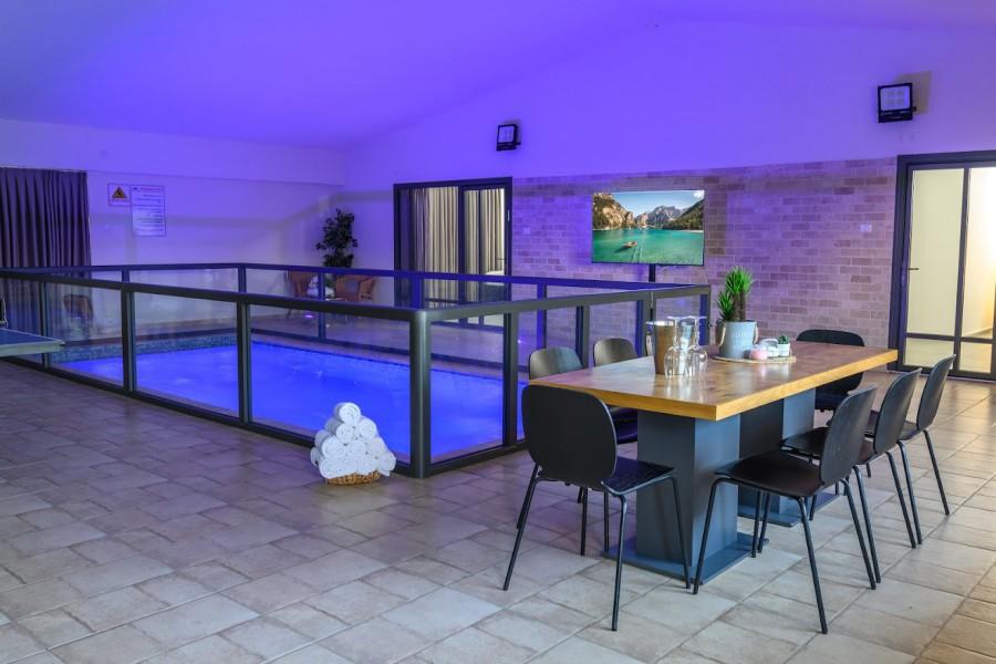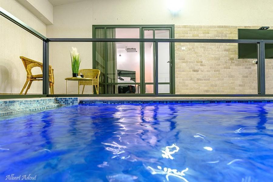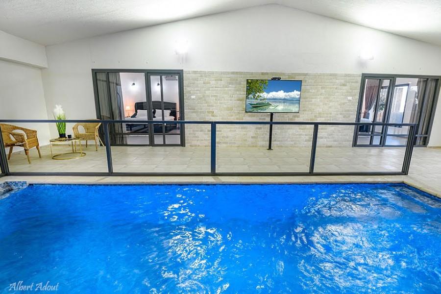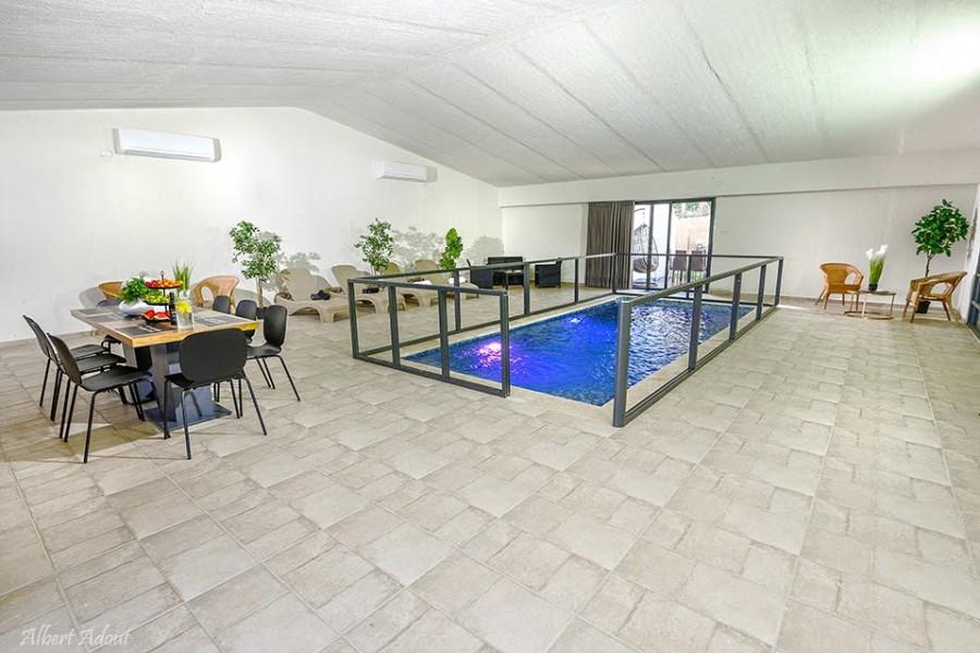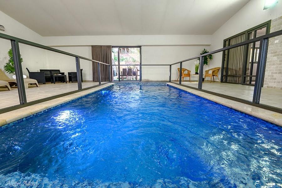 בריכת שחייה בתוך הוילה, מגודרת מחוממת מקורה