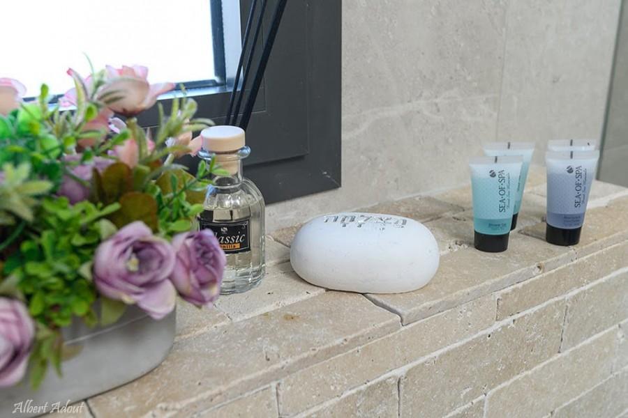 מגבות, סבונים ריחניים, שמפו ותחליב רחצה.