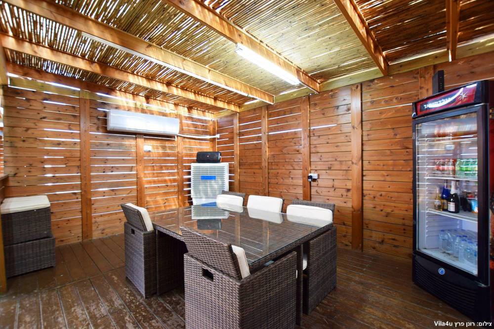 מטבח חיצוני מאובזר הכולל : 2 מקררים, מקפיא, תנור אפייה, כיריים גז לבישול
