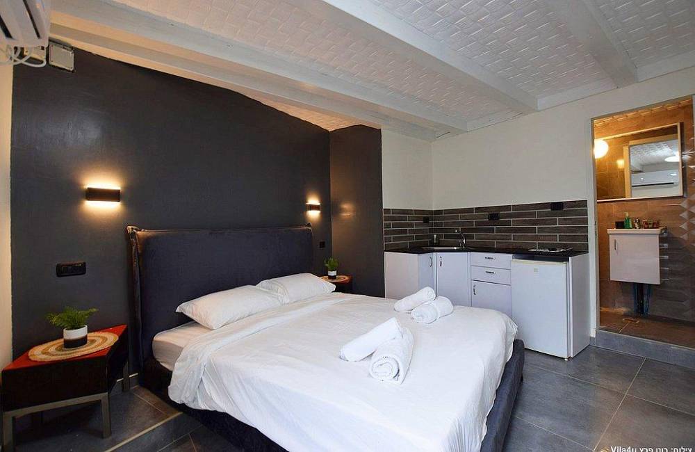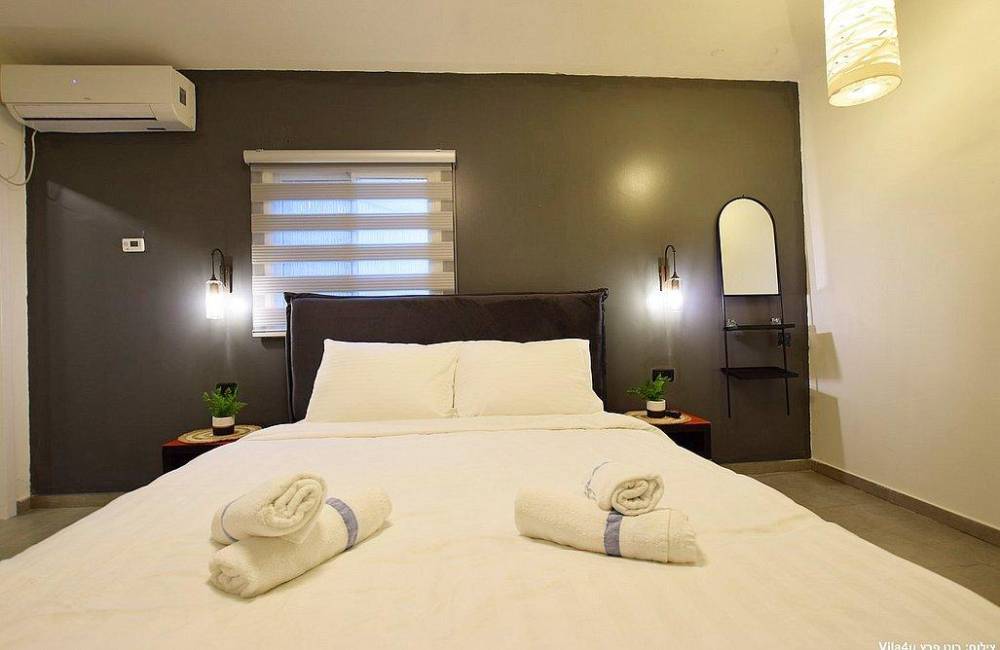 5 חדרי שינה המאובזרים: מיטה זוגית, שידה, מיזוג אוויר ומסך צפייה גדולה מסך 32 אינץ