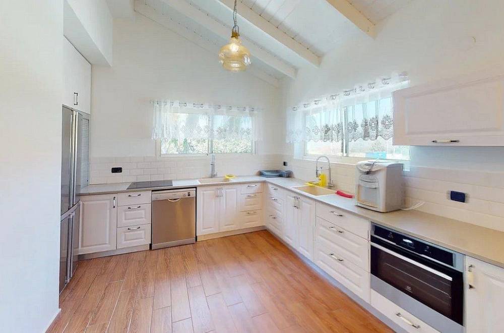 מטבח מאובזר הכולל: מקרר, 2 כיורים, מדיח כלים, כיריים חשמליות, תמי 4, כלי אוכל והגשה
