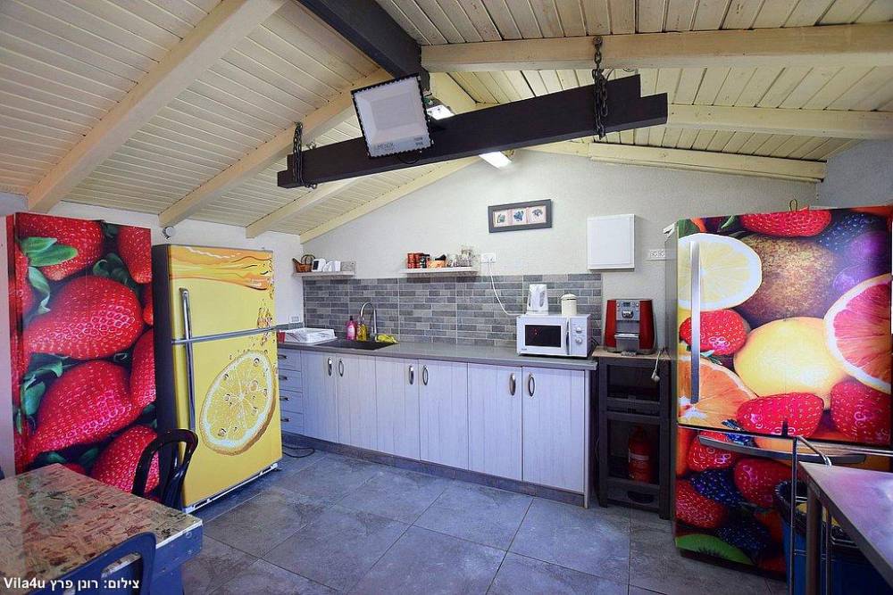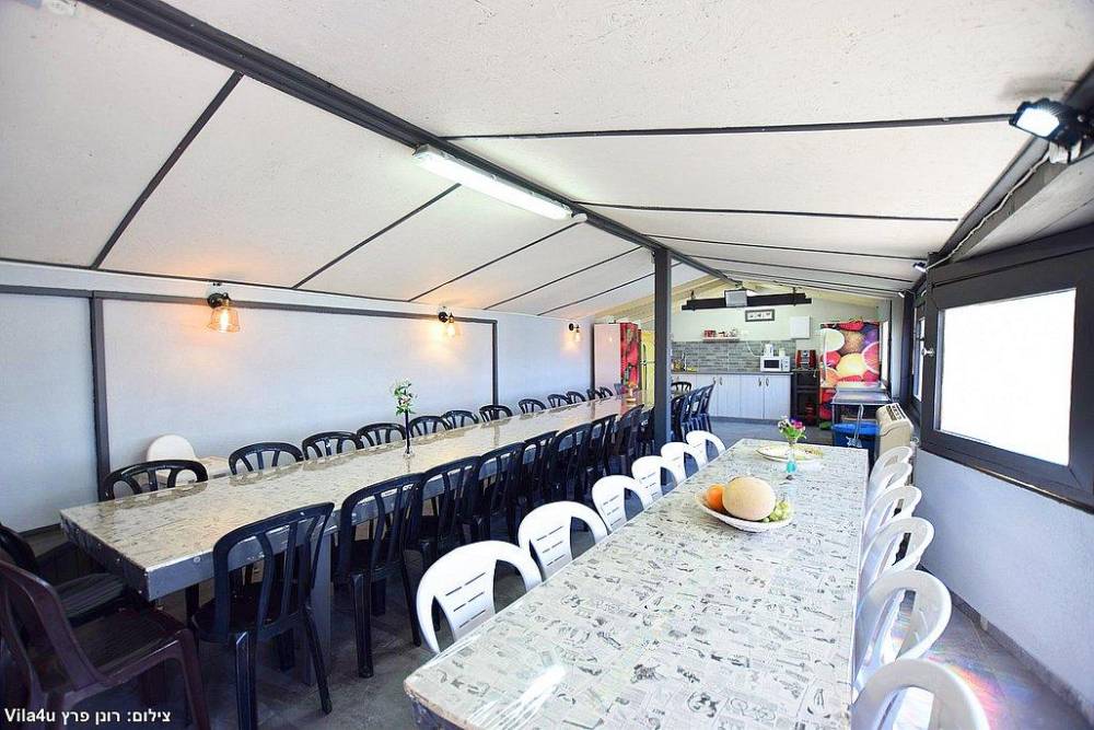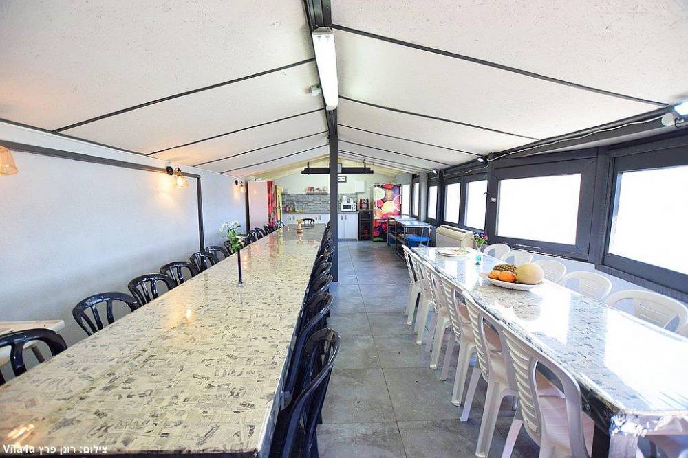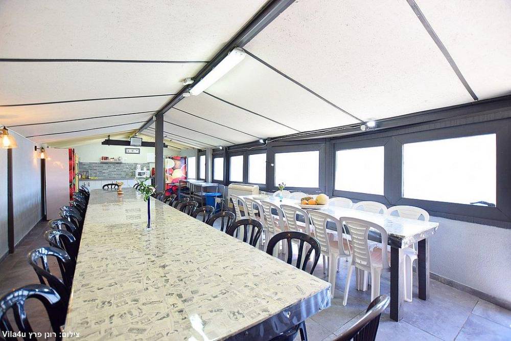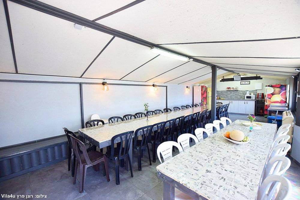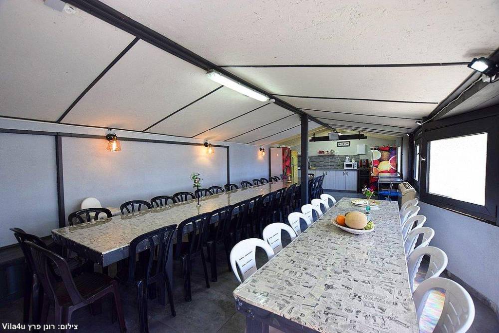 חדר אוכל ענק הכולל: 2 מקררים, מקפיא גדול, תמי 4, כיסאות ושולחנות, טלוויזיה, תמי 4 ומיזוג אוויר