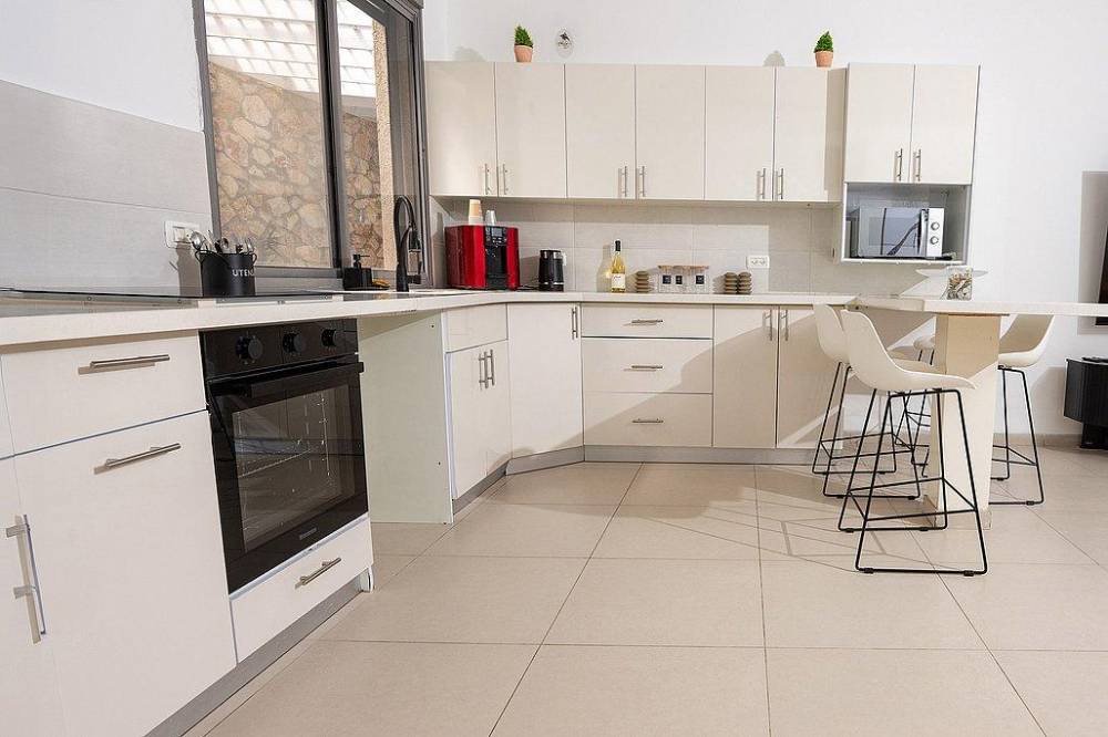 בוילה 8 חדרי שינה מפוארים, 4 מהם עם חדר רחצה פרטי, סלון יוקרתי עם טלוויזיה חכמה, מטבח מאובזר בכל קומה, ועיצוב מוקפד עד הפרטים הקטנים.