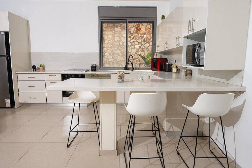 - אי מטבח עם כיסאות
