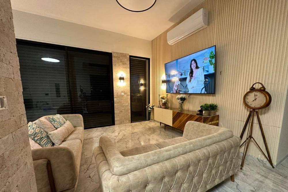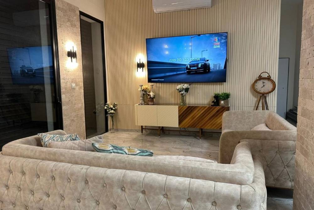 - סלון מרווח הכולל מערכת ישיבה מפנקת + מסך LCD, חבילת ערוצים בכבלים, SMART TV, יוטיוב, נטפליקס
