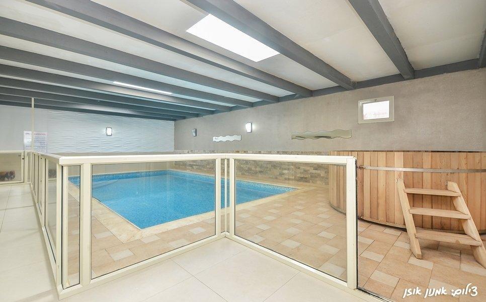 בריכת שחייה מקורה ומחוממת (בימי החורף) בגודל 4X10 עומק 1.60