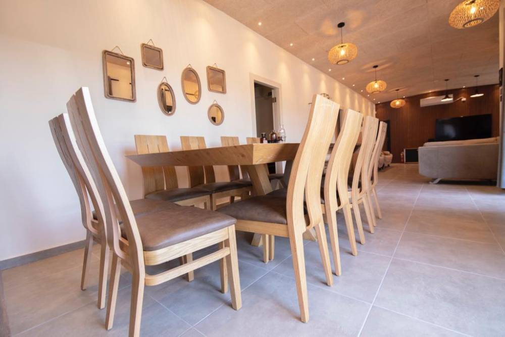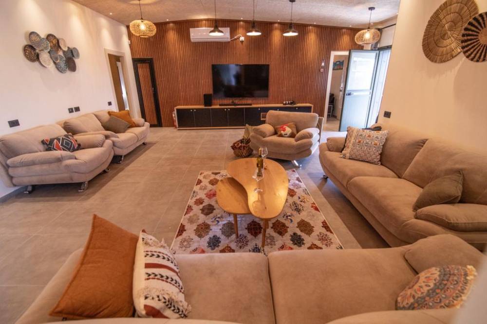 מטבח מאובזר הכולל: מקרר, פינת קפה, מכונת אספרסו, קומקום חשמלי, בר מים, תנור אפייה, כלי הגשה, סירים ומחבתות, מיקרוגל, כיריים על גז ופלטה לשבת