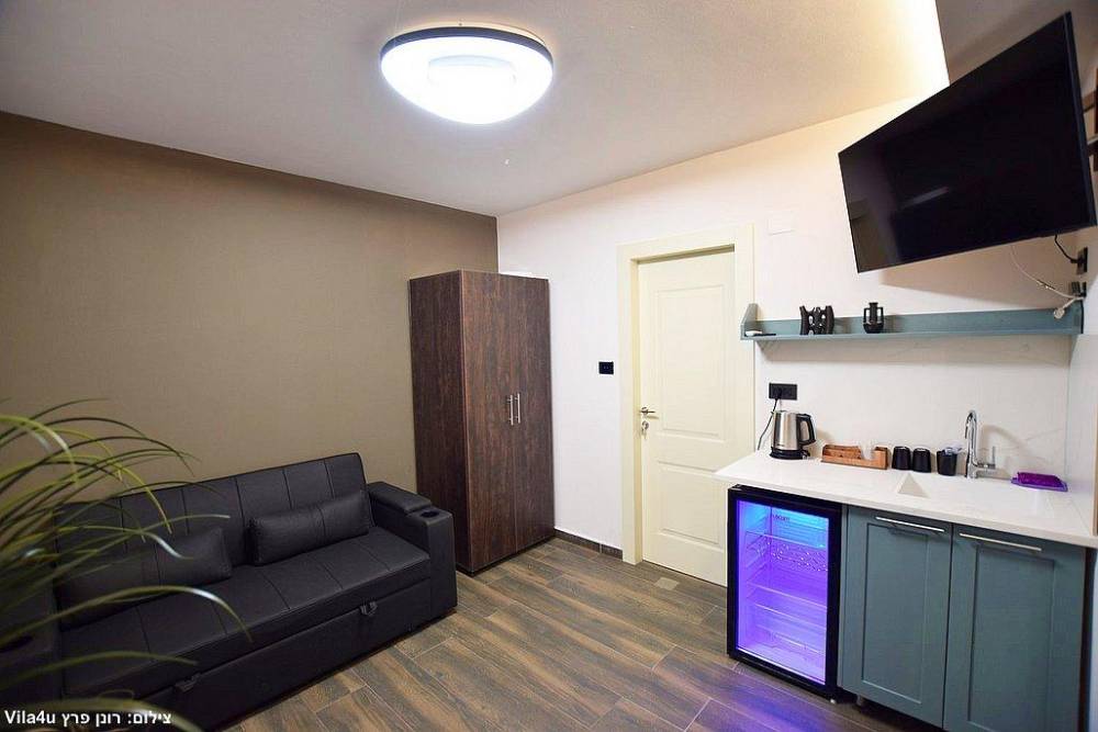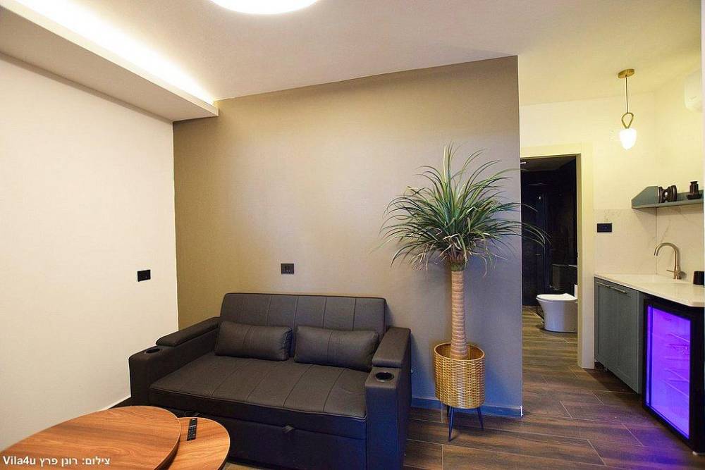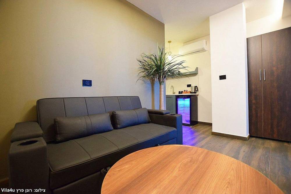 מטבחון מאובזר, סלון קטן, וספה נפתחת לכל סוויטה