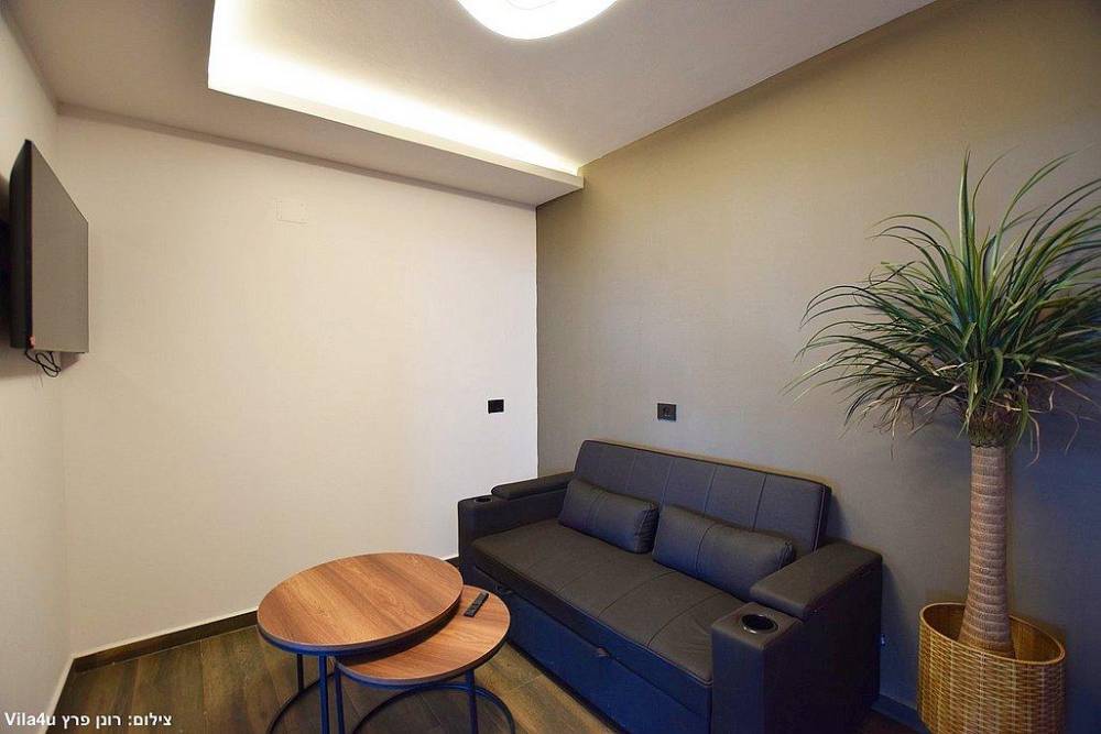 מיטה זוגית, טלוויזיה, מזגן, שידות וארונות לאחסון, סלון קטן הכולל ספה נפתחת + מסך טלוויזיה 85 אינץ'.