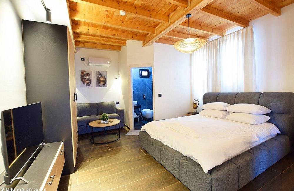 מיטה זוגית, מזגן, ספה, טלוויזיה, חדר רחצה פרטי