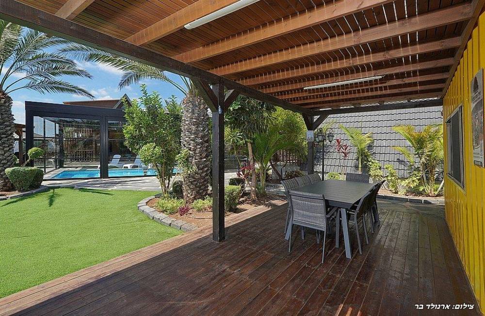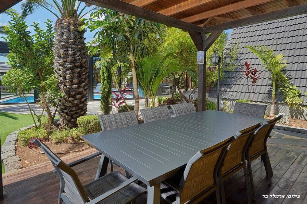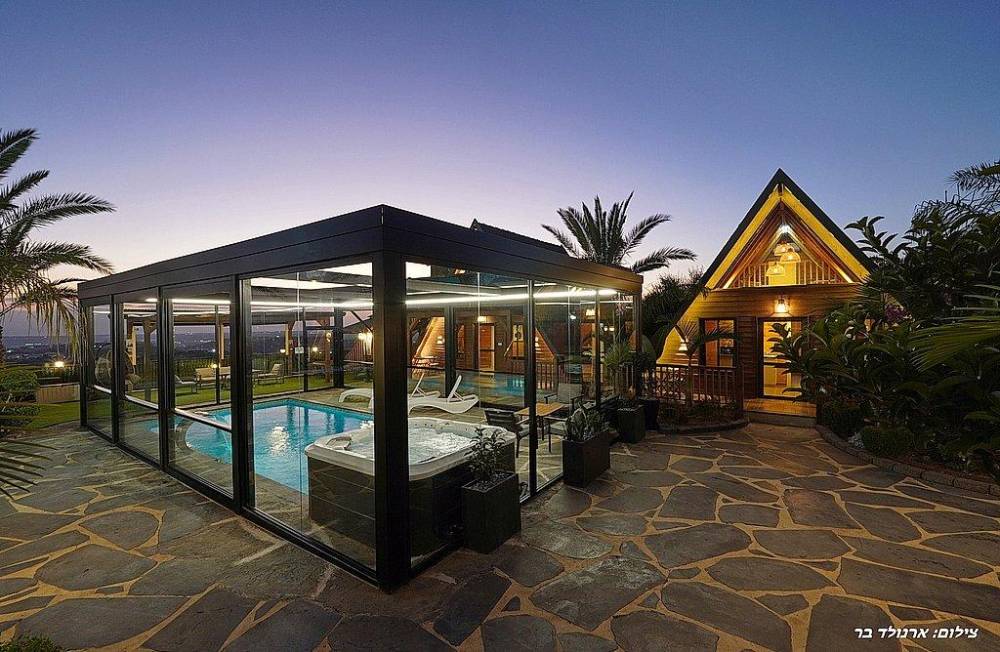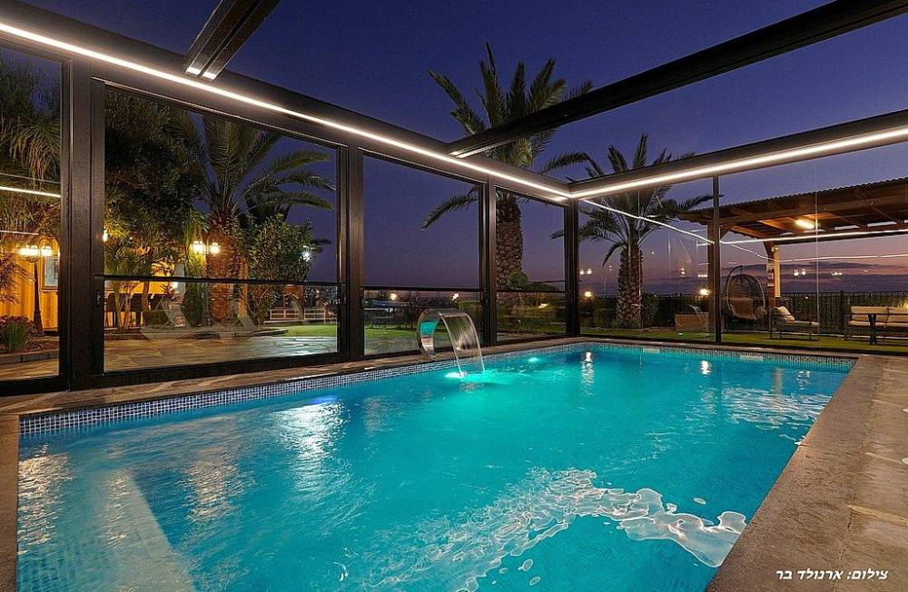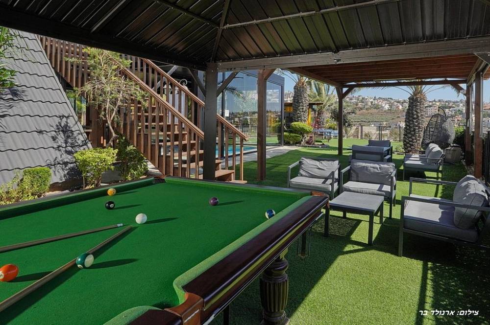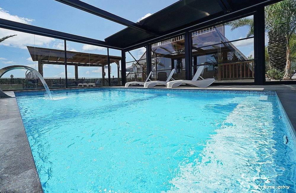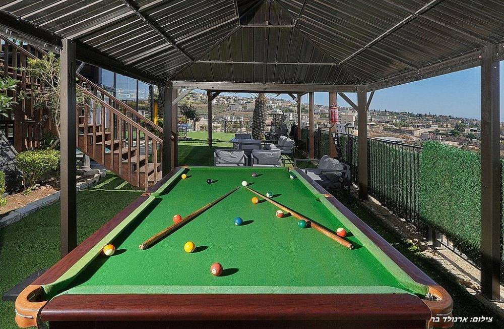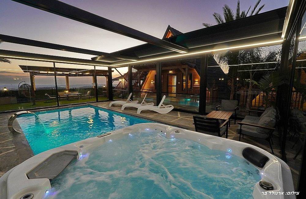 במתחם החיצוני תוכלו להנות מבריכת שחייה מחוממת ומקורה, שולחן פינג פונג ואף גם טרמפולינה לילדים.