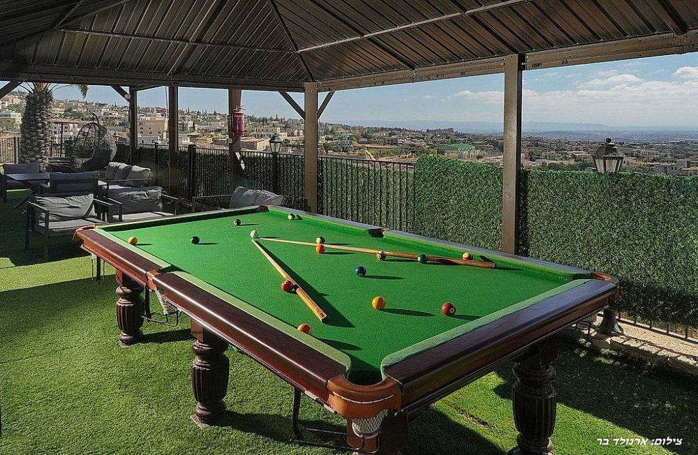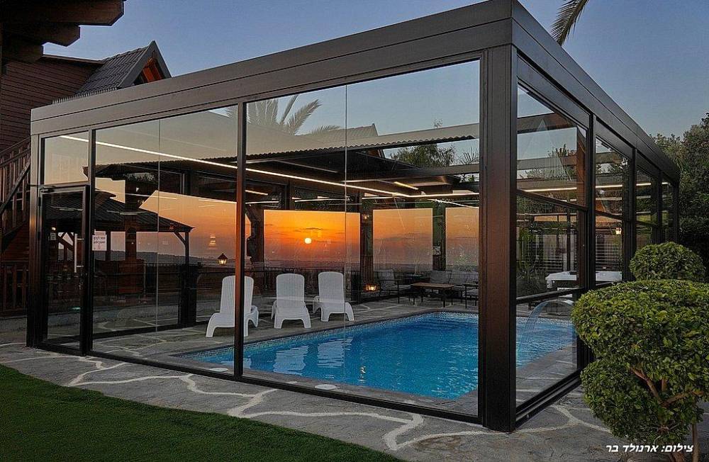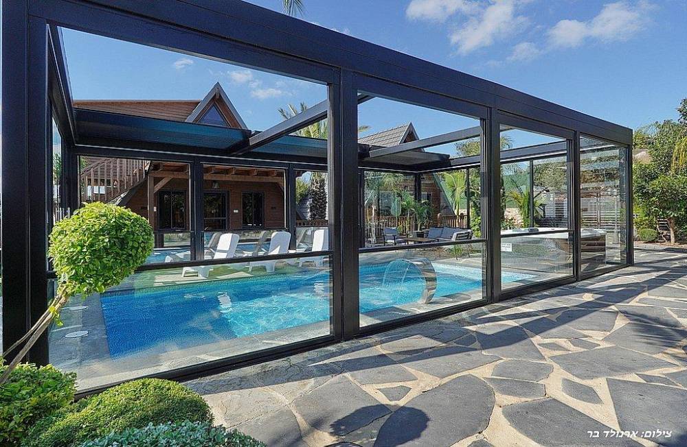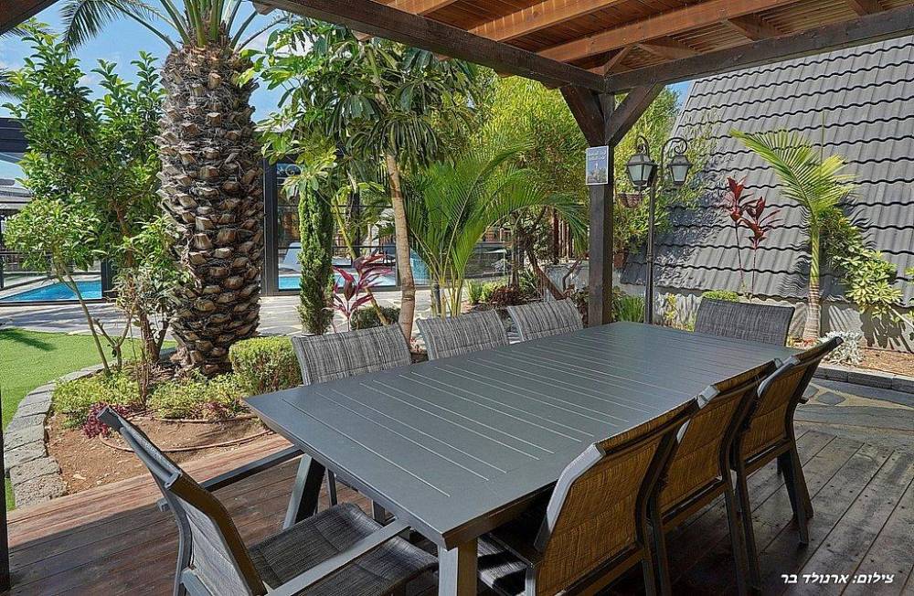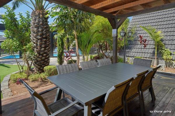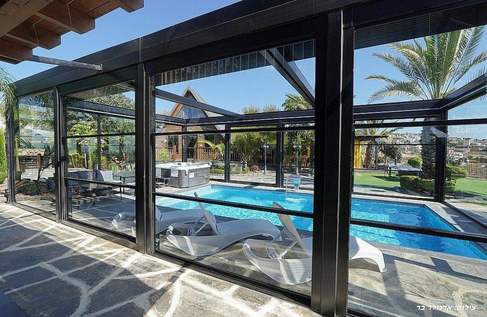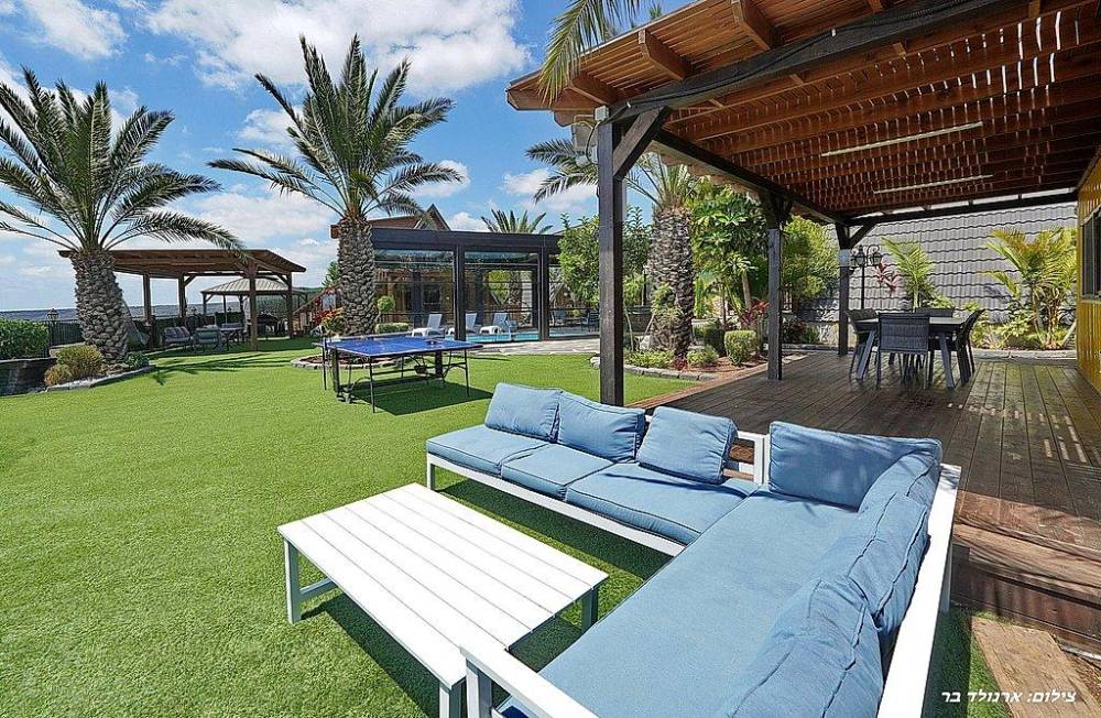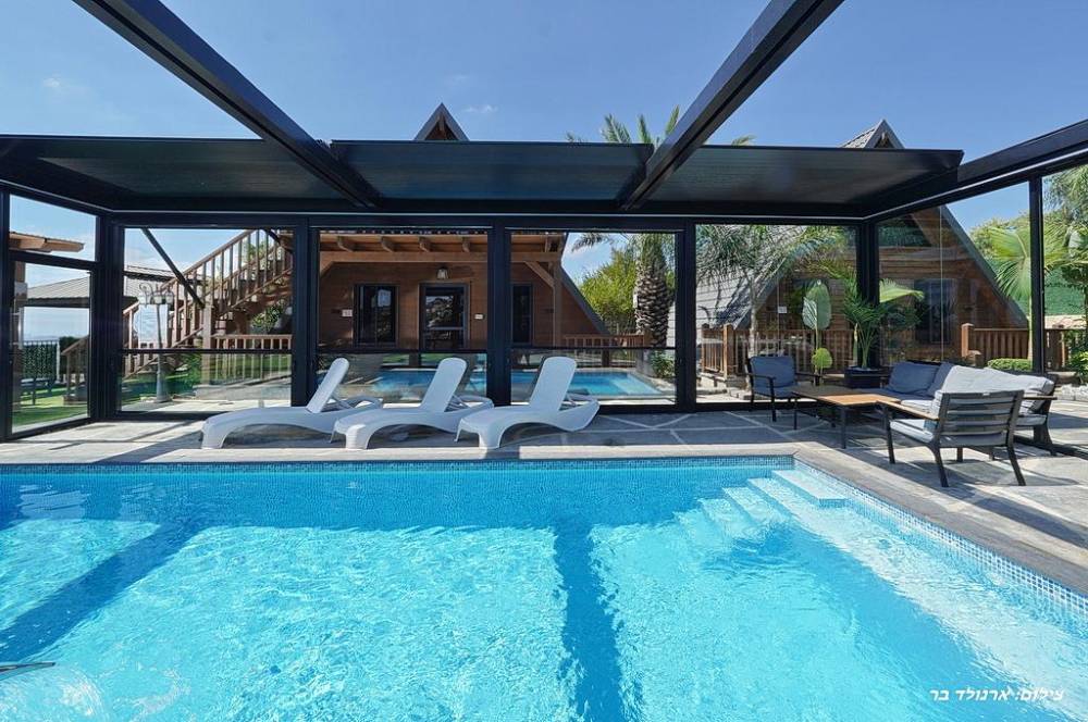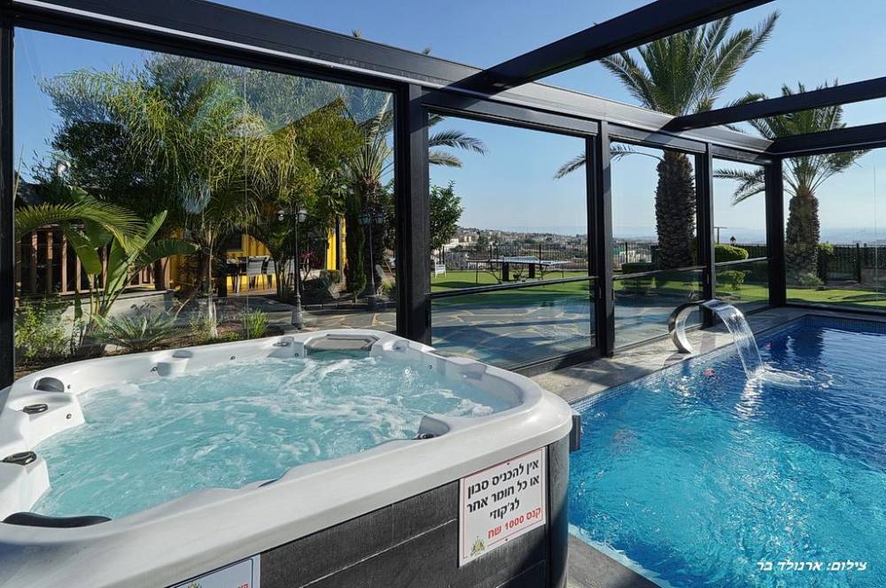 במתחם החיצוני תוכלו להנות מבריכת שחייה מחוממת ומקורה, שולחן פינג פונג ואף גם טרמפולינה לילדים.