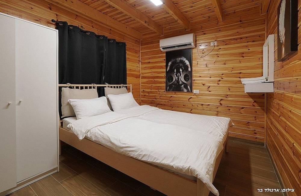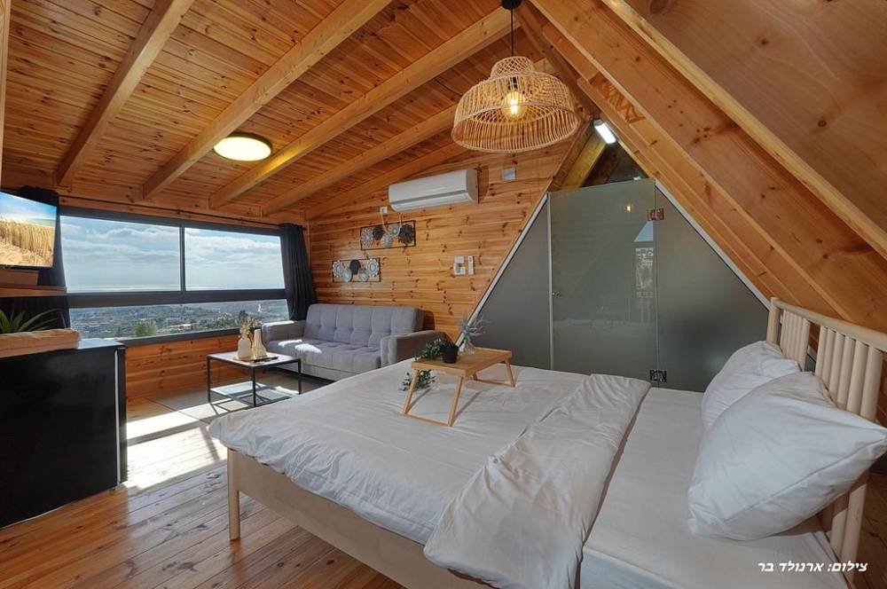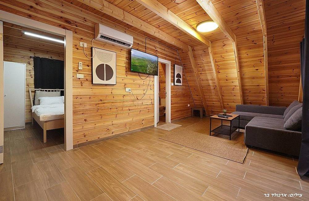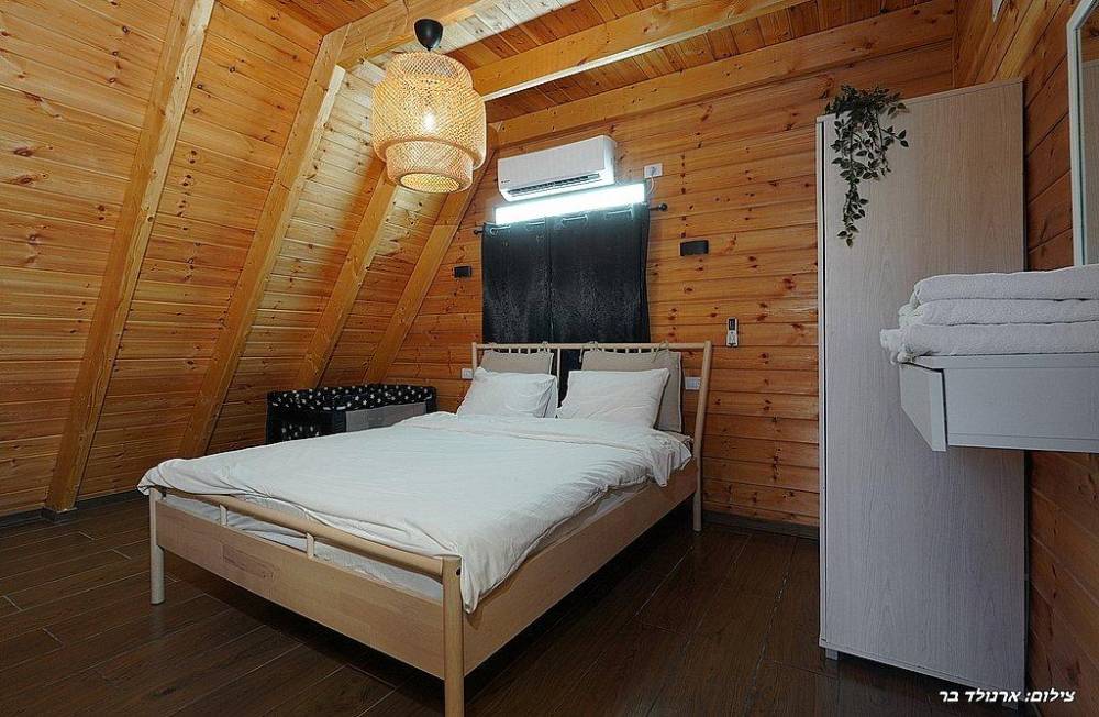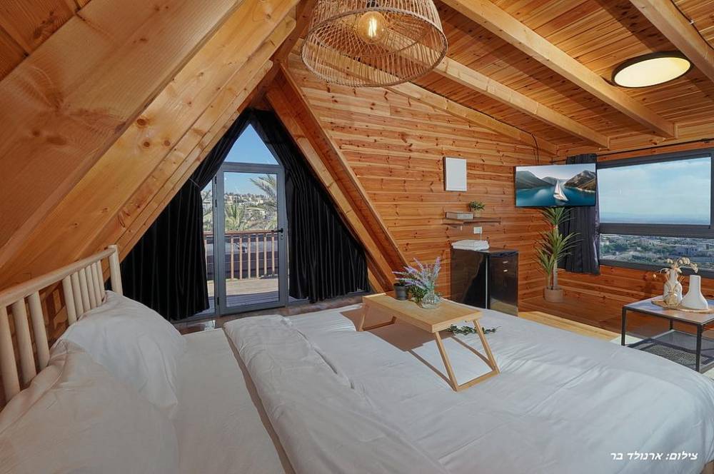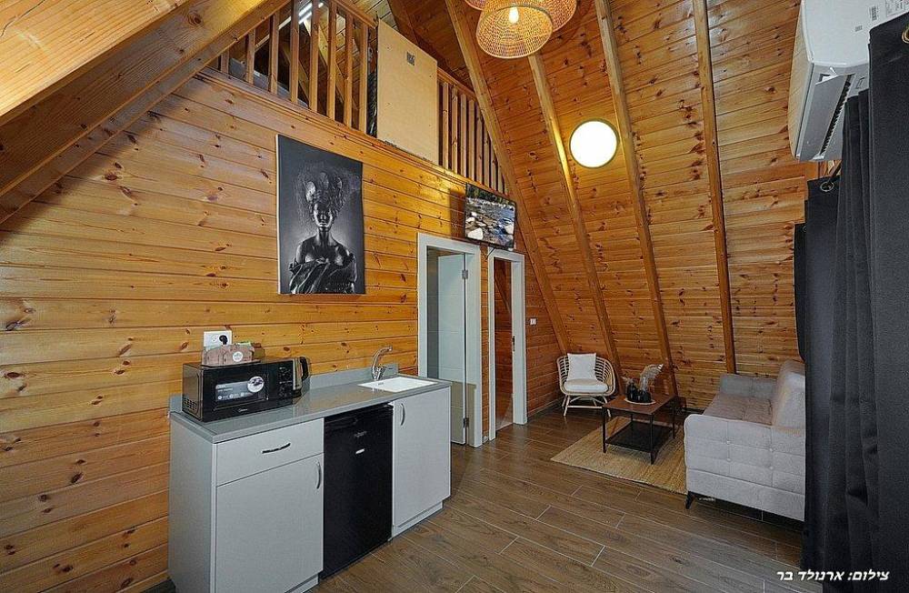 מיטה זוגית, מיזוג אוויר, טלוויזיה, פינת ישיבה, מטבחון וקומת גלריה עם מזרנים