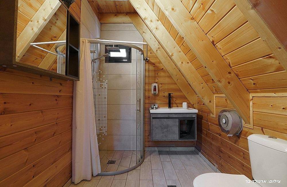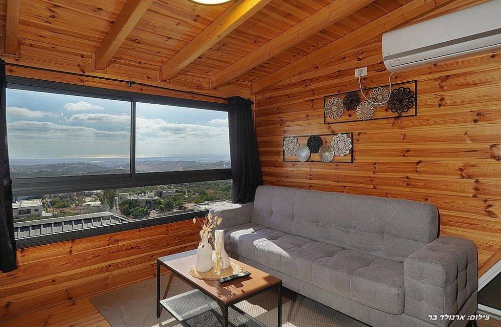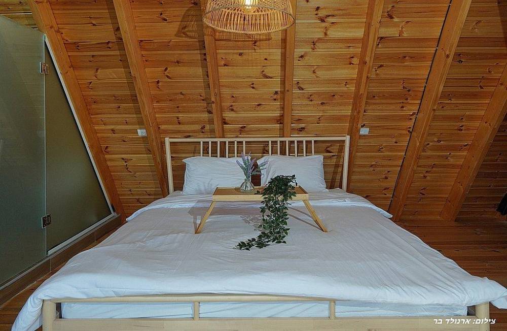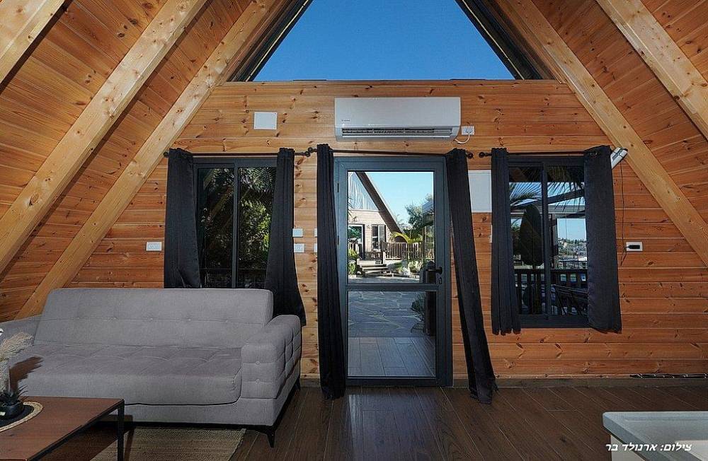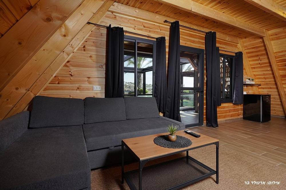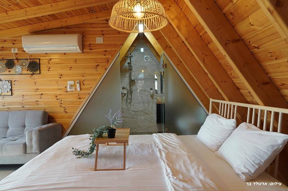 מיטה זוגית, מיזוג אוויר, טלוויזיה, פינת ישיבה, מטבחון וקומת גלריה עם מזרנים